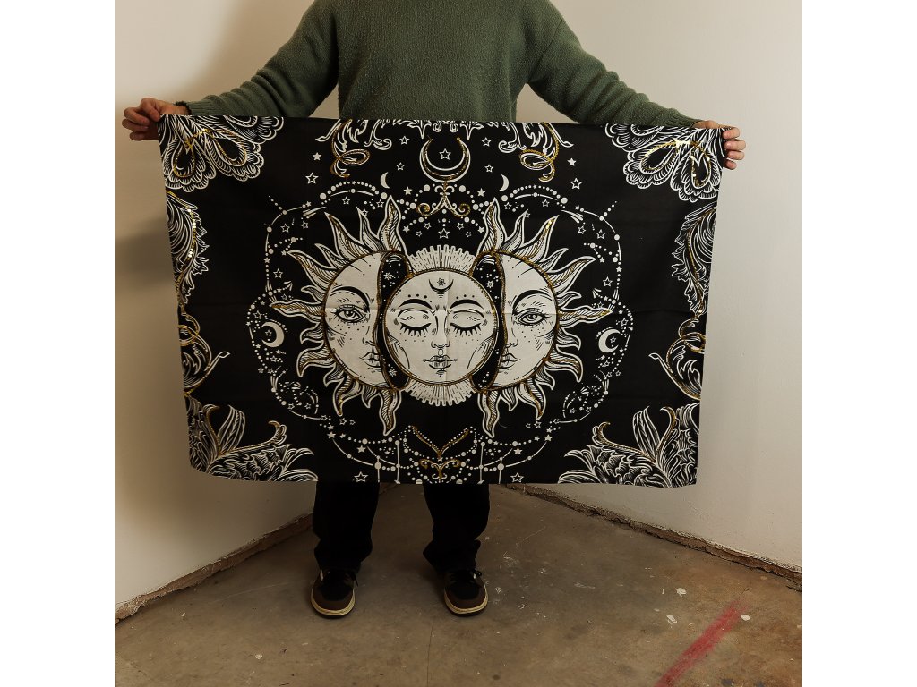 Tato detailní indická nástěnná dekorace zobrazuje zářivou Bohyni Slunce, symbol světla, síly a tvůrčí energie. Její symbolika představuje obnovu a ženskou sílu – témata, která silně rezonují na trhu s duchovními a wellness produkty. Toto dílo o rozměrech 70x110 cm lze vystavit jako nástěnné umění, použít jako přehoz nebo stylizovat jako tapiserii. Každá jednotka je úhledně zabalena v ochranném polyetylenovém sáčku s připevněnou visačkou, připravena k bezproblémové prezentaci v maloobchodě. Prodejci těží z jeho všestranné velikosti a výrazného černobílého designu, který vynikne v jakékoli expozici. Umělecké dílo Bohyně Slunce je ideální pro spirituální butiky, jógová studia nebo obchody s alternativním životním stylem a oslovuje zákazníky, které láká symbolika, posílení a vnitřní vitalita. Jeho kulturní bohatost a stylový dopad z něj činí snadno umístitelný předmět do kolekcí mindfulness nebo sezónních dárků.Doplňkové parametry