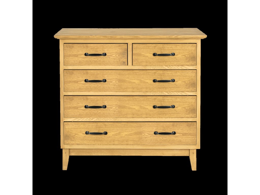 Voskovaná komoda KD715 navržená v rustikálním stylu, celá vyrobena z masivního borovicového dřeva. Má dvě zásuvky přímo pod pracovní deskou a tři větší a prostorné zásuvky. Ideální do obývacího pokoje, ložnice nebo šatny jako věšák na prádlo. Dodá každému interiéru jedinečnou atmosféru, plnou tepla a rodinné atmosféry. Díky jeho funkčnosti bude skladování mnohem jednodušší. Komoda má odolnou a pevnou konstrukci. Minimalistická, jednoduchá a elegantní komoda. Borová komoda KD715 je pokryta přírodním včelím voskem, který vytváří vrstvu, která chrání před vlhkostí a zároveň dřevo vyživuje. Díky voskování zvýrazníme přirozenou strukturu dřeva a prohloubíme jeho přirozenou barvu. Včelí vosk je přírodní produkt, voskovaný nábytek tak získává antistatické vlastnosti – méně se na jeho povrchu usazuje prach. Další výhodou voskovaného nábytku je jeho hedvábně hladký povrch a příjemná vůně přírodního dřeva. Udržení zdravé struktury dřeva je základem dlouhé životnosti voskovaného nábytku. V záložce "Údržba a používání voskovaného nábytku" najdete cenné rady k pravidlům péče o nábytek z kolekce Rustikal.
