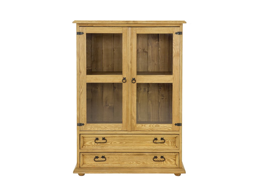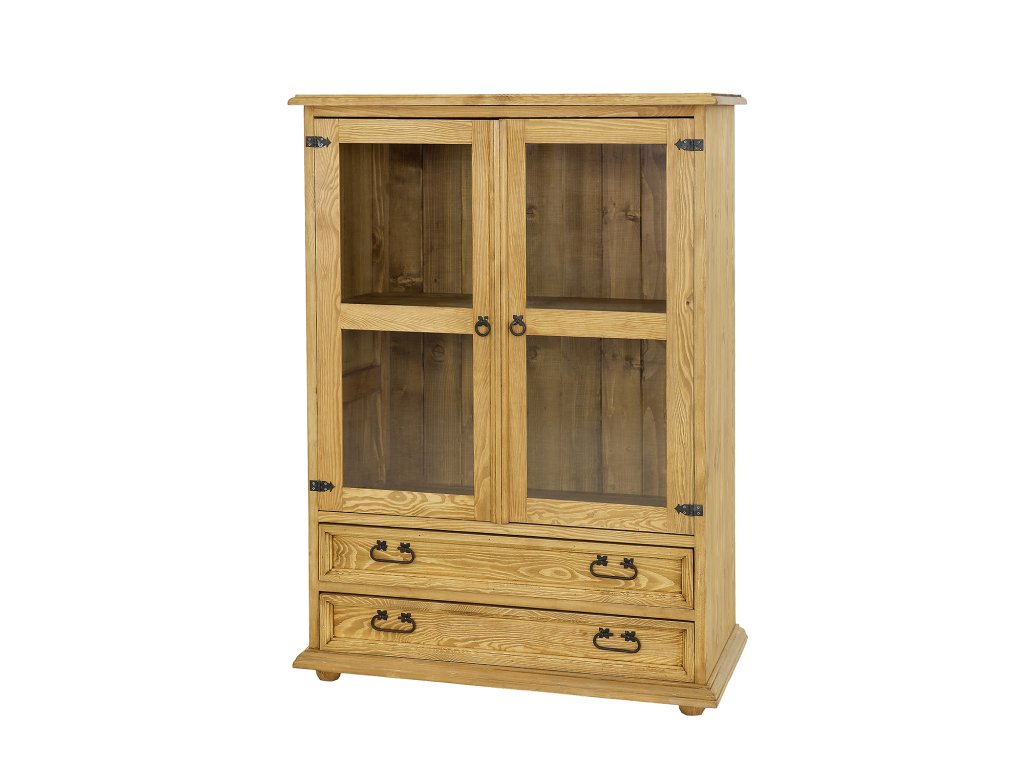 Voskovaná, skleněná komoda ve verzi STANDARD KD803, navržená v rustikálním stylu, celá z masivního borovicového dřeva. Horní, skleněná část má uvnitř jednu polici. Spodní část má dvě velké zásuvky, posuvné na dřevěných vodítkách. K výrobě byly použity ručně vyrobené kovové úchyty a panty s letitým efektem. Komoda má odolnou a pevnou konstrukci. Skvěle poslouží v obývacím pokoji. Za skleněnými dvířky můžete vystavit nádobí, sklenice a šálky, zásuvky lze využít k uložení příborů a ubrousků. Borová komoda KD803 dodá každému interiéru jedinečnou atmosféru, plnou tepla a rodinné atmosféry. Díky jeho funkčnosti bude skladování mnohem jednodušší. Komoda ve verzi SLIM KD703 Komoda KD803 je pokryta přírodním včelím voskem, který vytváří vrstvu, která chrání před vlhkostí a zároveň pečuje o dřevo. Díky voskování zvýrazníme přirozenou strukturu dřeva a prohloubíme jeho přirozenou barvu. Včelí vosk je přírodní produkt, voskovaný nábytek tak získává antistatické vlastnosti – méně se na jeho povrchu usazuje prach. Další výhodou voskovaného nábytku je jeho hedvábně hladký povrch a příjemná vůně přírodního dřeva. Udržení zdravé struktury dřeva je základem dlouhé životnosti voskovaného nábytku. V záložce "Údržba a používání voskovaného nábytku" najdete cenné rady k pravidlům péče o nábytek z kolekce Rustikal.