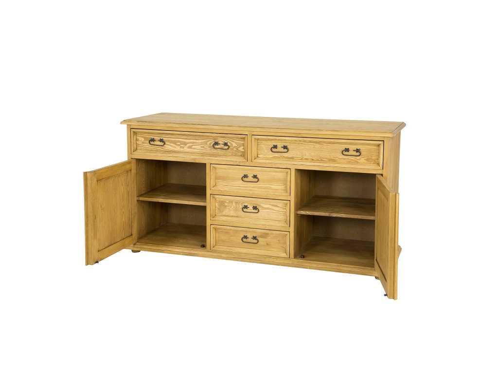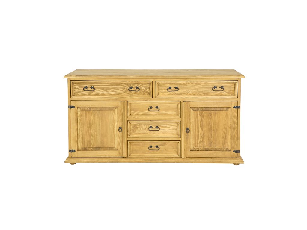Voskovaná komoda ve verzi STANDARD KD807 navržená v rustikálním stylu, celá z masivního borovicového dřeva. Má dvě vnější skříňky s dvířky (každá s policí uvnitř) oddělené třemi zásuvkami a dvěma přídavnými, praktickými zásuvkami umístěnými těsně pod pracovní deskou, posuvnými na dřevěných vodítkách. K výrobě byly použity ručně vyrobené kovové úchyty a panty s letitým efektem. Komoda má odolnou a pevnou konstrukci. Ideální do obývacího pokoje, ložnice nebo šatny. Dodá každému interiéru jedinečnou atmosféru, plnou tepla a rodinné atmosféry. Díky jeho funkčnosti bude skladování mnohem jednodušší. Komoda ve verzi SLIM KD707 Borová komoda KD807 je pokryta přírodním včelím voskem, který vytváří vrstvu, která chrání před vlhkostí a zároveň pečuje o dřevo. Díky voskování zvýrazníme přirozenou strukturu dřeva a prohloubíme jeho přirozenou barvu. Včelí vosk je přírodní produkt, voskovaný nábytek tak získává antistatické vlastnosti – méně se na jeho povrchu usazuje prach. Další výhodou voskovaného nábytku je jeho hedvábně hladký povrch a příjemná vůně přírodního dřeva. Udržení zdravé struktury dřeva je základem dlouhé životnosti voskovaného nábytku. V záložce "Údržba a používání voskovaného nábytku" najdete cenné rady k pravidlům péče o nábytek z kolekce Rustikal.