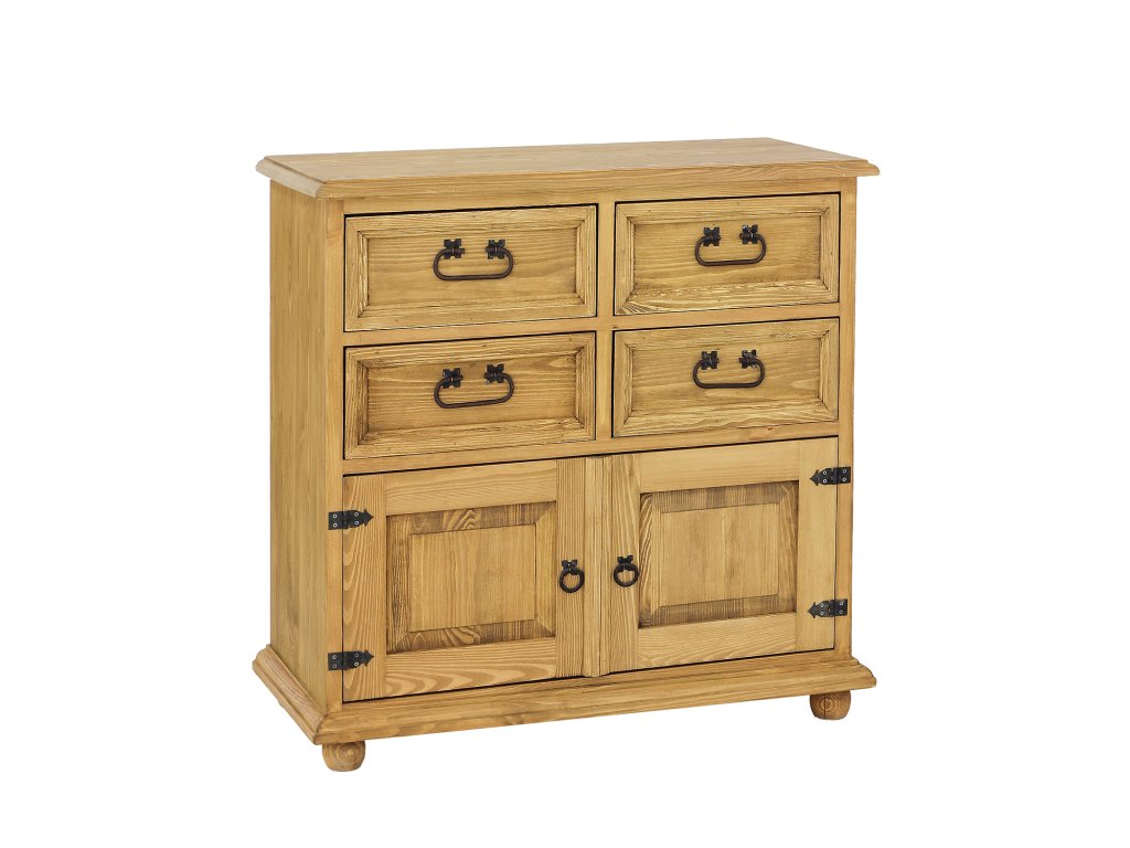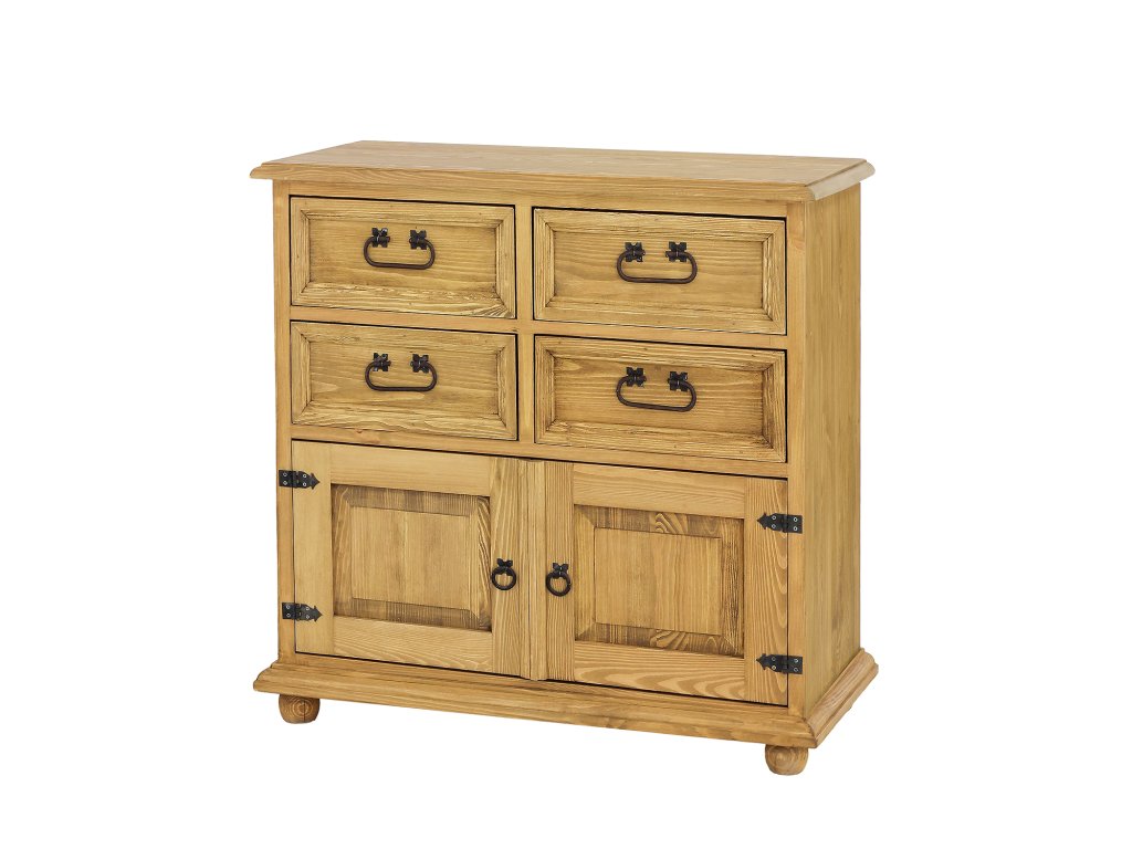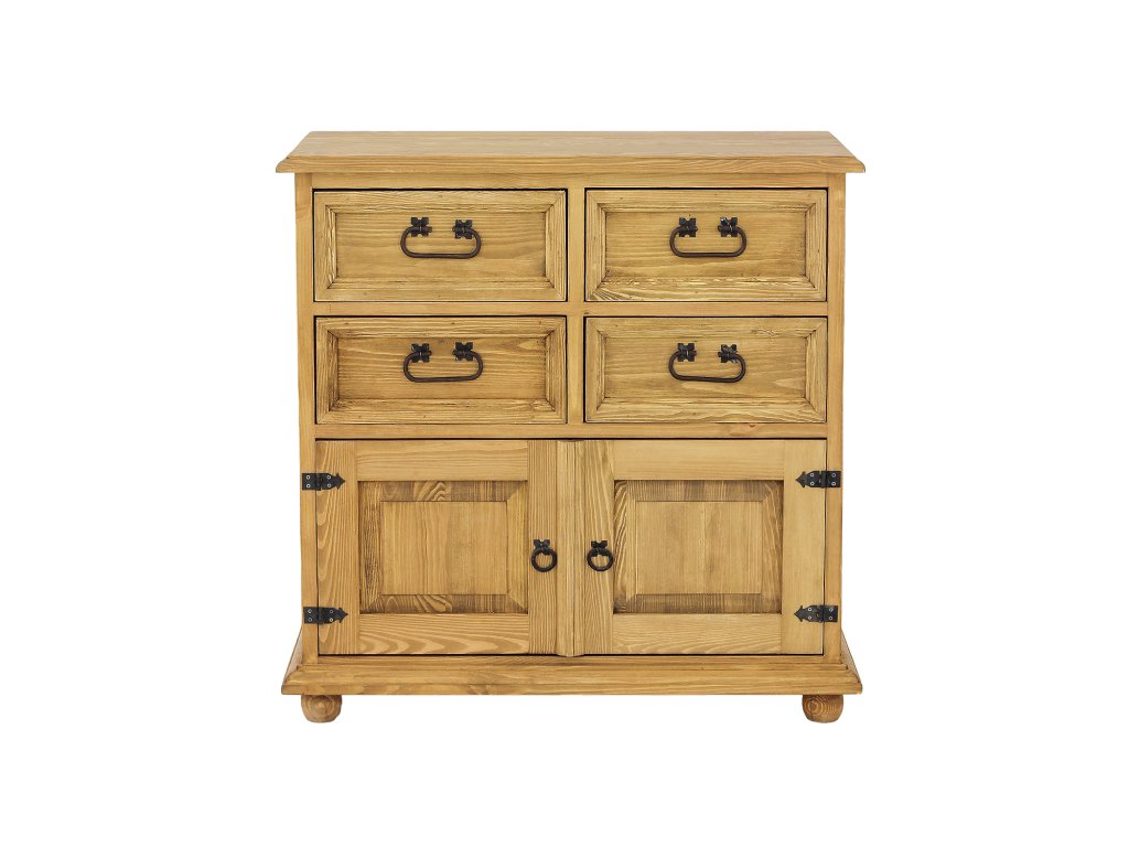 Voskovaná komoda KD701 ve verzi SLIM, navržená v rustikálním stylu, celá z masivního borovicového dřeva. Má čtyři praktické zásuvky na dřevěných vodítkách a prostornou skříňku s dvířky. K výrobě byly použity ručně vyrobené kovové úchyty a panty s letitým efektem. Komoda má odolnou a pevnou konstrukci. Ideální do ložnic a šaten. Dodá každému interiéru jedinečnou atmosféru, plnou tepla a rodinné atmosféry. Díky jeho funkčnosti bude skladování mnohem jednodušší. Komoda ve standardním provedení KD801 Komoda KD701 je pokryta přírodním včelím voskem, který vytváří vrstvu, která chrání před vlhkostí a zároveň pečuje o dřevo. Díky voskování zvýrazníme přirozenou strukturu dřeva a prohloubíme jeho přirozenou barvu. Včelí vosk je přírodní produkt, voskovaný nábytek tak získává antistatické vlastnosti – méně se na jeho povrchu usazuje prach. Další výhodou voskovaného nábytku je jeho hedvábně hladký povrch a příjemná vůně přírodního dřeva. Udržení zdravé struktury dřeva je základem dlouhé životnosti voskovaného nábytku. V záložce "Údržba a používání voskovaného nábytku" najdete cenné rady k pravidlům péče o nábytek z kolekce Rustikal.