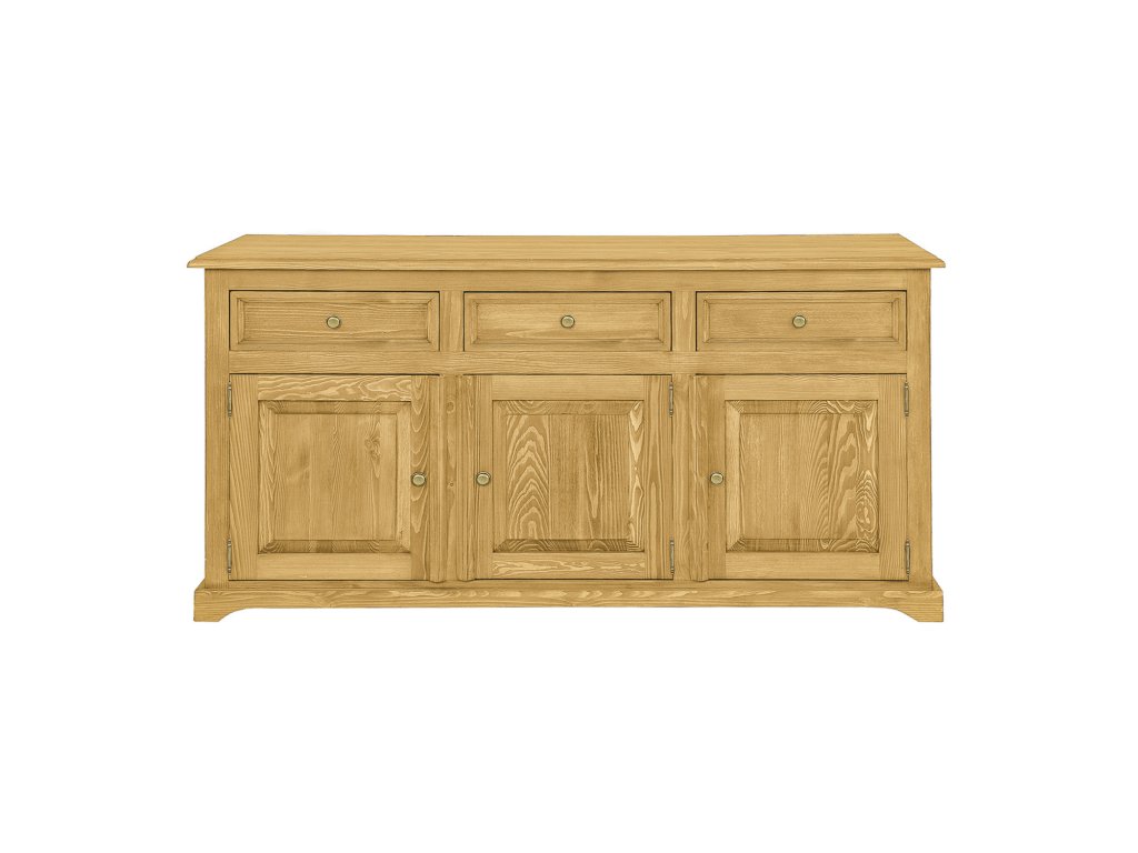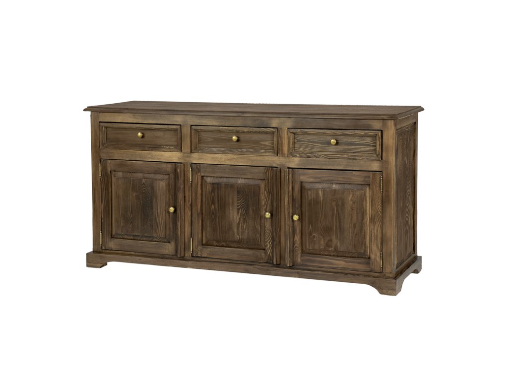Voskovaná komoda ve verzi STANDARD KD819 navržená v rustikálním stylu, celá z masivního borovicového dřeva. Má tři prostorné zásuvky na dřevěných vodítkách a dvě skříňky s policí uvnitř (dvoudveřová a jednodveřová). K výrobě byly použity ručně vyrobené kovové úchytky a panty s letitým efektem ve zlaté barvě. Komoda má odolnou a pevnou konstrukci. Ideální do ložnic a šaten. Dodá každému interiéru jedinečnou atmosféru, plnou tepla a rodinné atmosféry. Díky jeho funkčnosti bude skladování mnohem jednodušší. Komoda ve verzi SLIM KD719 Komoda KD819 je pokryta přírodním včelím voskem, který vytváří vrstvu, která chrání před vlhkostí a zároveň pečuje o dřevo. Díky voskování zvýrazníme přirozenou strukturu dřeva a prohloubíme jeho přirozenou barvu. Včelí vosk je přírodní produkt, voskovaný nábytek tak získává antistatické vlastnosti – méně se na jeho povrchu usazuje prach. Další výhodou voskovaného nábytku je jeho hedvábně hladký povrch a příjemná vůně přírodního dřeva. Udržení zdravé struktury dřeva je základem dlouhé životnosti voskovaného nábytku. V záložce "Údržba a používání voskovaného nábytku" najdete cenné rady k pravidlům péče o nábytek z kolekce Rustikal.