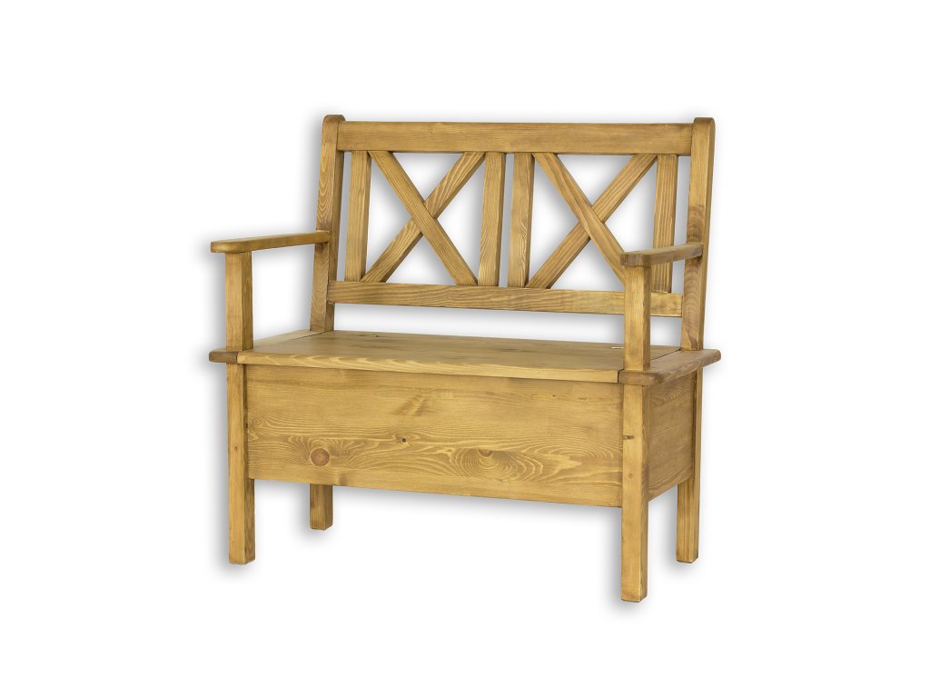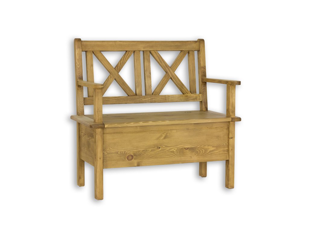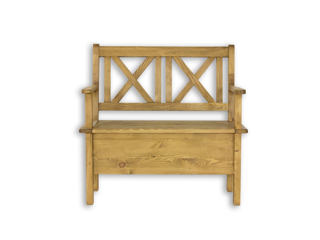 Voskovaná lavice s područkami NR700. Navrženo v rustikálním stylu, vyrobeno výhradně z masivního borovicového dřeva. Má originální opěradlo ve tvaru kříže a otevírací sedák s prostorným úložným prostorem. Tento praktický úložný prostor lze využít k uložení důležitých věcí. Ergonomické sedadlo je vybaveno praktickými područkami, díky kterým je používání lavice mnohem pohodlnější. Lavička NR700 je extrémně funkční kus nábytku, který vám umožní vyměnit židle a usadit u stolu ještě více lidí. Skvěle poslouží nejen v interiéru vaší domácí kuchyně, ale i na chodbě nebo terase. Dodá každému interiéru jedinečnou atmosféru, plnou tepla a rodinné atmosféry. Nábytek je pokryt přírodním včelím voskem, který vytváří vrstvu, která chrání před vlhkostí a zároveň dřevo vyživuje. Díky voskování zvýrazníme přirozenou strukturu dřeva a prohloubíme jeho přirozenou barvu. Včelí vosk je přírodní produkt, voskovaný nábytek tak získává antistatické vlastnosti – méně se na jeho povrchu usazuje prach. Další výhodou voskovaného nábytku je jeho hedvábně hladký povrch a příjemná vůně přírodního dřeva. Udržení zdravé struktury dřeva je základem dlouhé životnosti voskovaného nábytku. V záložce "Údržba a používání voskovaného nábytku" najdete cenné rady k pravidlům péče o nábytek z kolekce Rustikal.