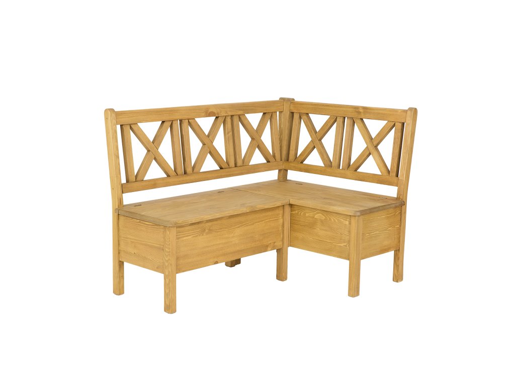 Voskovaná rohová lavice NR704. Navrženo v rustikálním stylu, vyrobeno výhradně z masivního borovicového dřeva. Má originální opěradlo ve tvaru kříže a otevírací sedák s prostorným úložným prostorem. Tento praktický úložný prostor lze využít k uložení důležitých věcí. Rohová lavice NR704 je extrémně funkční kus nábytku, který vám umožní vyměnit židle a usadit u stolu ještě více lidí. Skvěle poslouží nejen v interiéru vaší domácí kuchyně, ale i na chodbě nebo terase. Dodá každému interiéru jedinečnou atmosféru, plnou tepla a rodinné atmosféry. Nábytek je pokryt přírodním včelím voskem, který vytváří vrstvu, která chrání před vlhkostí a zároveň dřevo vyživuje. Díky voskování zvýrazníme přirozenou strukturu dřeva a prohloubíme jeho přirozenou barvu. Včelí vosk je přírodní produkt, voskovaný nábytek tak získává antistatické vlastnosti – méně se na jeho povrchu usazuje prach. Další výhodou voskovaného nábytku je jeho hedvábně hladký povrch a příjemná vůně přírodního dřeva. Udržení zdravé struktury dřeva je základem dlouhé životnosti voskovaného nábytku. V záložce "Údržba a používání voskovaného nábytku" najdete cenné rady k pravidlům péče o nábytek z kolekce Rustikal.