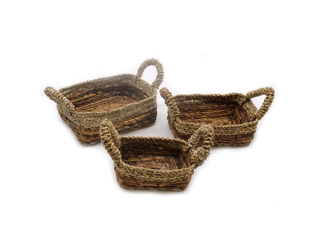 Čtvercový Košík z Banánových Listů a Mořské Trávy - Souprava 3 Kusů