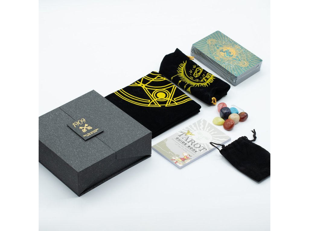 Dárková sada tarotových karet Gold & Turquoise Foil – s brožurou – je pozoruhodnou fúzí luxusu a symboliky a kombinuje bohatou barvu s duchovní hloubkou. Zlaté a tyrkysové fóliové detaily vytvářejí výrazný a poutavý vzhled, který se hodí jako ústřední prvek pro prémiové police a dárkové stojany. Sada obsahuje: • 78kartový balíček tarotových karet – Poutavé umělecké dílo s povrchovou úpravou ze zlaté a tyrkysové fólie. • Podrobný průvodce – Přístupné interpretace pro začátečníky i zkušené čtenáře. • Luxusní prezentační krabička – Texturovaná krabička s fóliovými detaily pro luxusní vzhled. • Prémiový karton – Hladké a odolné karty určené pro dlouhodobé používání. Vhodné pro maloobchodníky, kteří chtějí představit tarotovou kartu vyšší hodnoty se silným vizuálním dopadem. Přidejte tuto sadu do svého sortimentu a přilákejte zákazníky, kteří hledají dárkovou, výraznou tarotovou kartu s trvalou přitažlivostí.Doplňkové parametry