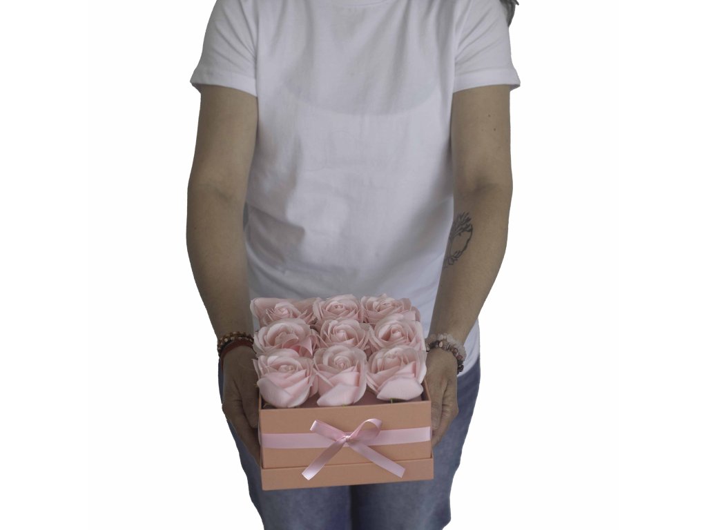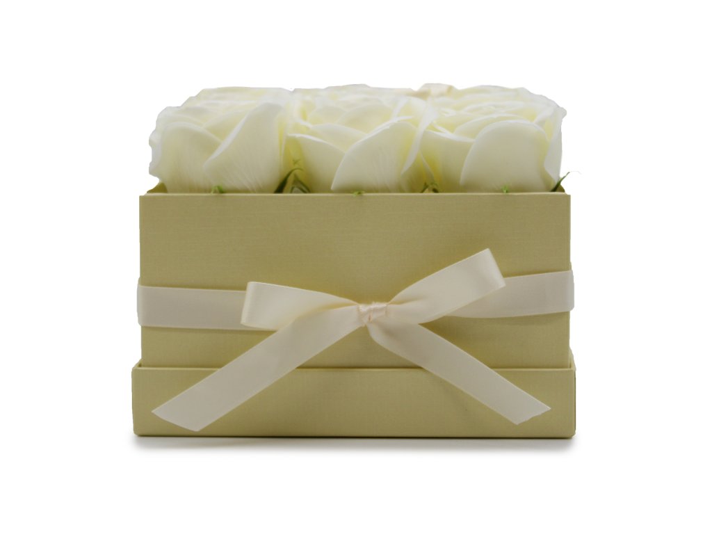 Dárkový Box z Mýdlových Květů - 9 Krémových Růží - Čtverec