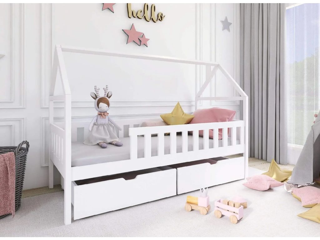 Postel bungalov Domi je návrhem do dětského pokoje. Skládá se z vlastní postele a rámu ve tvaru střechy. Celek vytváří obraz domu. Je to nejen dekorativní prvek, ale také praktický jako součást krytu moskytiéry. Rám postele je obehnán bezpečnostními zábradlími. Stabilní nohy nábytku zabraňují jeho klouzání, všechny prvky tvoří stabilní celek. Nábytek lze zakoupit v různých velikostech a zajímavých odstínech. Postel je vhodná pro svépomocnou montáž.Doplňkové parametry