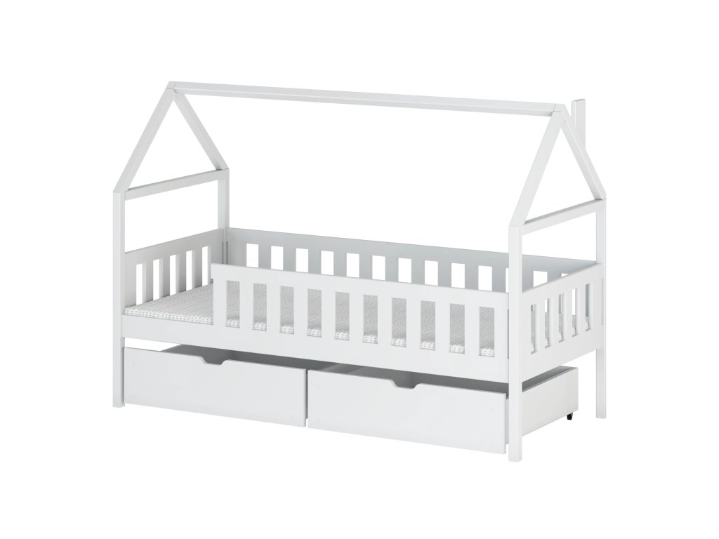 Postel bungalov Domi je návrhem do dětského pokoje. Skládá se z vlastní postele a rámu ve tvaru střechy. Celek vytváří obraz domu. Je to nejen dekorativní prvek, ale také praktický jako součást krytu moskytiéry. Rám postele je obehnán bezpečnostními zábradlími. Stabilní nohy nábytku zabraňují jeho klouzání, všechny prvky tvoří stabilní celek. Nábytek lze zakoupit v různých velikostech a zajímavých odstínech. Postel je vhodná pro svépomocnou montáž.Doplňkové parametry