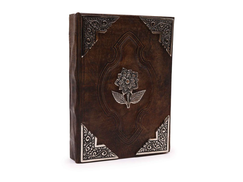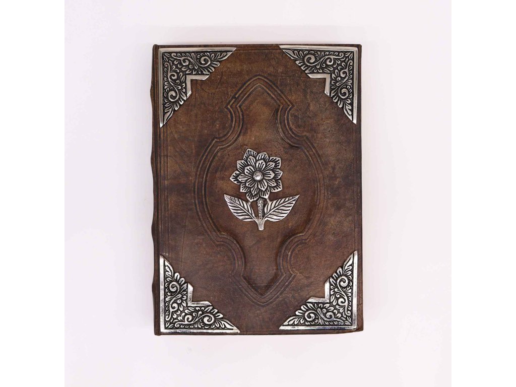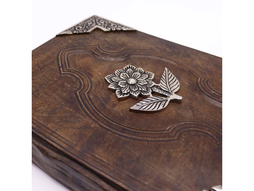 Hnědý Zápisník z Hrubé Kůže - Zinkový Dekor - Růže - 200 Stran s Ozdobním Okrajem - 26x18cm