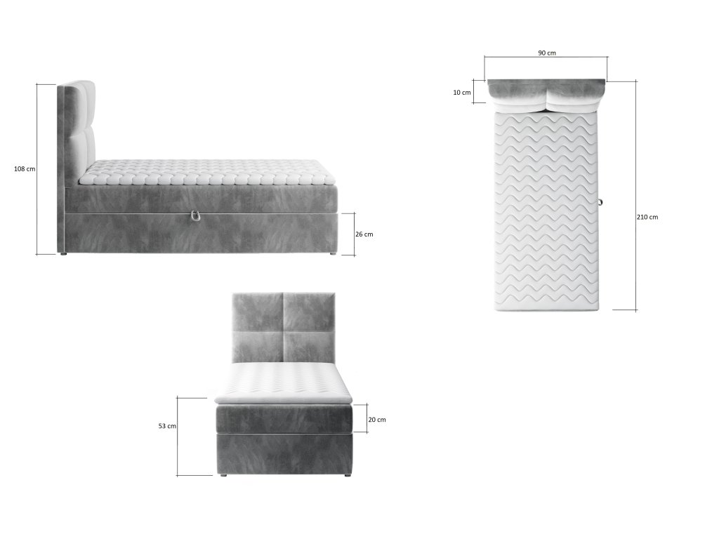 Rivia je klasická, jednolůžková a velmi vkusná postel v klasickém stylu, která bude dokonalým nábytkem v každém typu ložnice – ať už jde o pokoj vašeho dítěte nebo pokoj připravený pro hosty – Rivia je vždy volské oko. Ložná plocha 90 x 209 cm, stejně jako výplň bonellových pružin a pěny T25, zaručují zdravý spánek, neboť tento typ matrace podpírá tělo ve správné poloze při odpočinku. I když postel Arco působí minimalisticky a kompaktně, má prostorný kontejner na lůžkoviny s látkovým madlem. Mezi další prvky patří vysoký 53centimetrový sedák a 3centimetrové nohy. Rivia Boxspring je perfektní volbou, pokud hledáte perfektní jednolůžko do vaší ložnice. Rivia je synonymem pro menší velikost v kombinaci s maximálním pohodlím.Doplňkové parametry