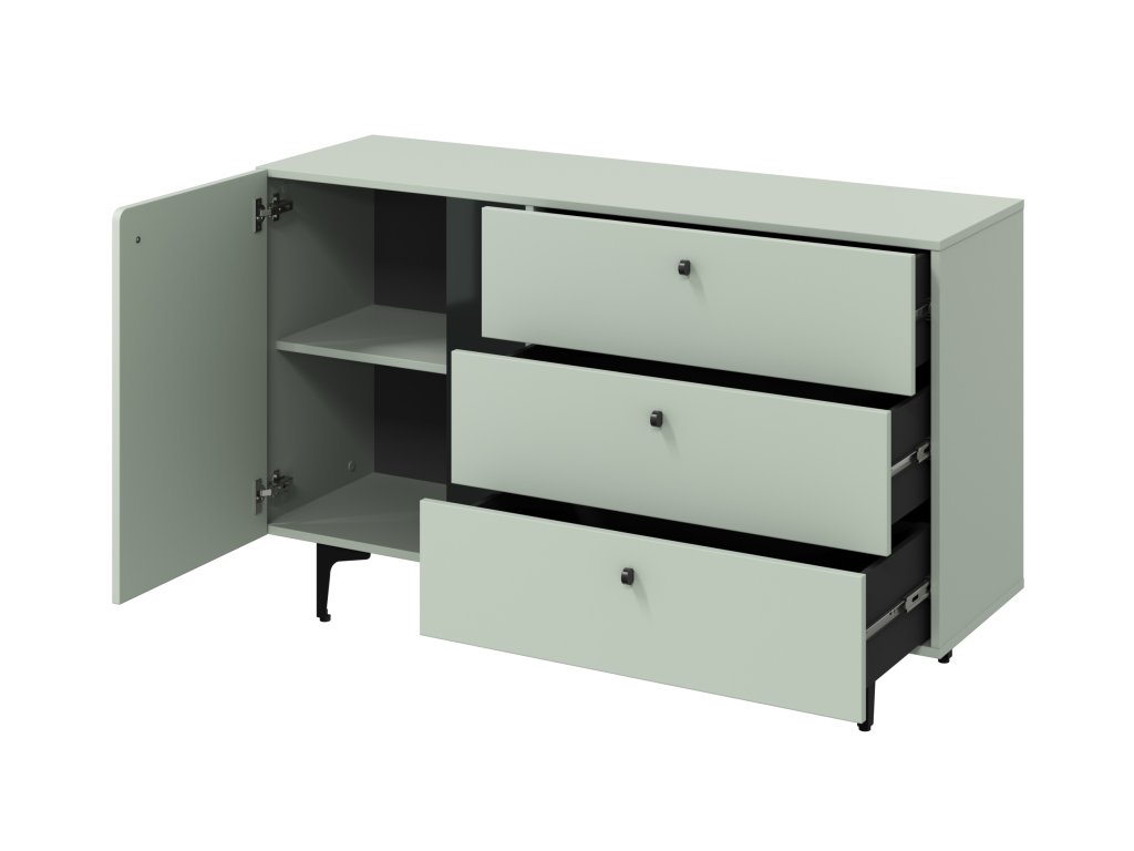 Komoda COLOURS má 1 dvířka a 3 zásuvky.
