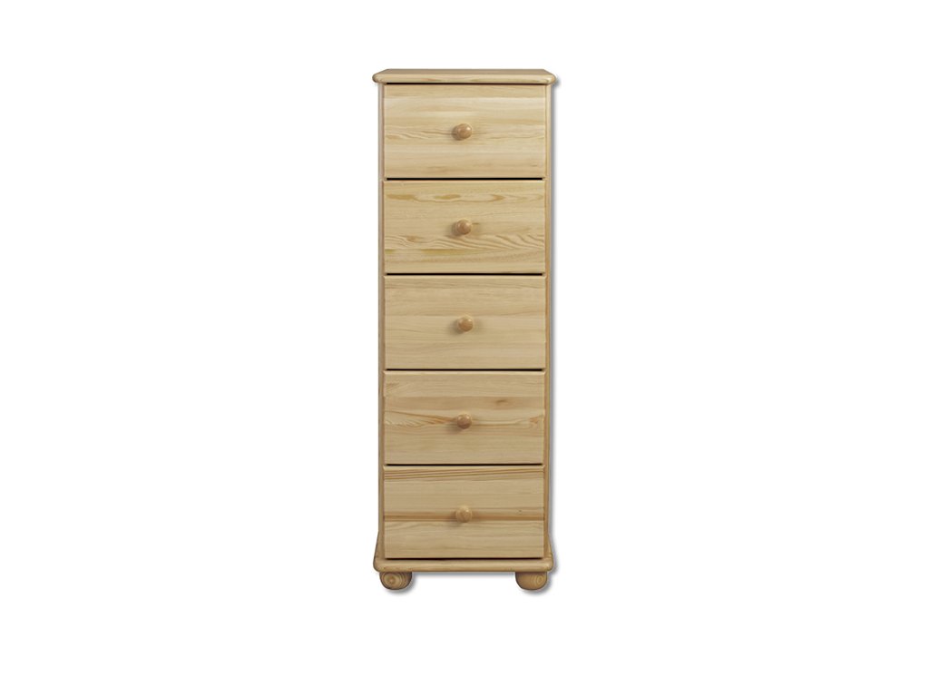 Komoda je vyrobena z masívního borovicového dřeva. Povrchová úprava přírodní, povrch je lakovaný nebo syrové přírodní dřevo. Je možnost namoření na barvu olše, dubu, ořechu