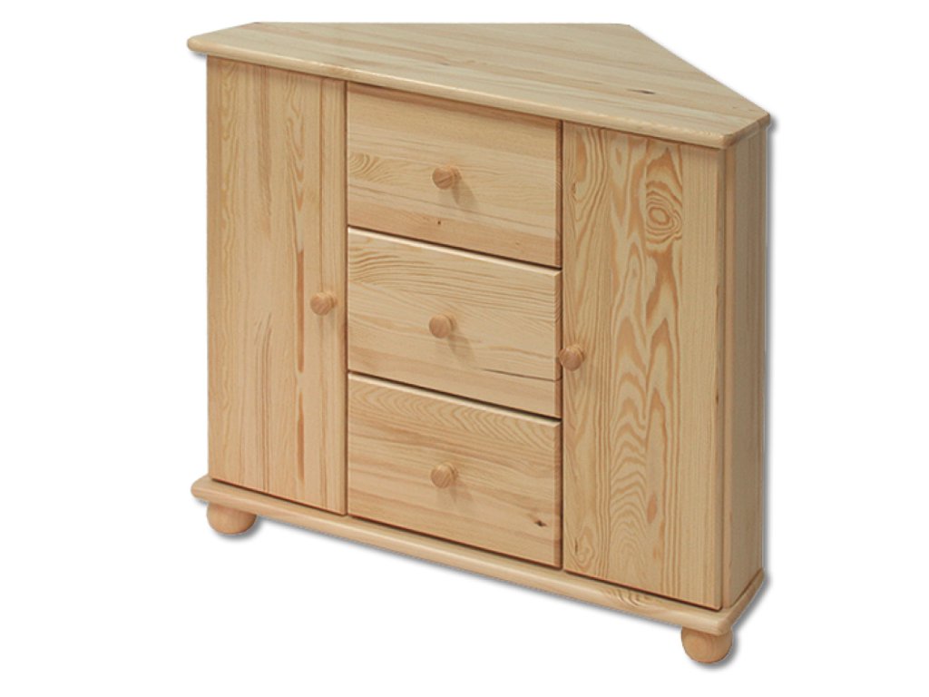 Rohová komoda je vyrobena z masívního borovicového dřeva. Povrchová úprava přírodní, povrch je lakovaný nebo syrové přírodní dřevo. Je možnost namoření na barvu olše, dubu, ořechu.