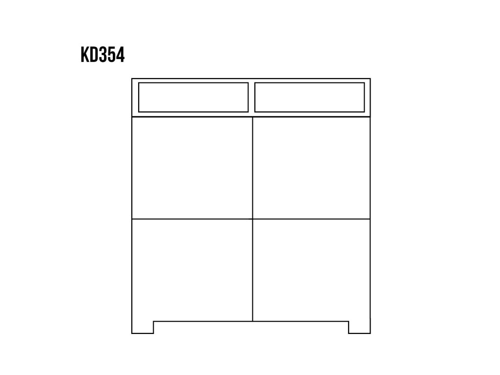 Komoda KD354 má 2 dvířka a za nimi polici, 2 zásuvky.