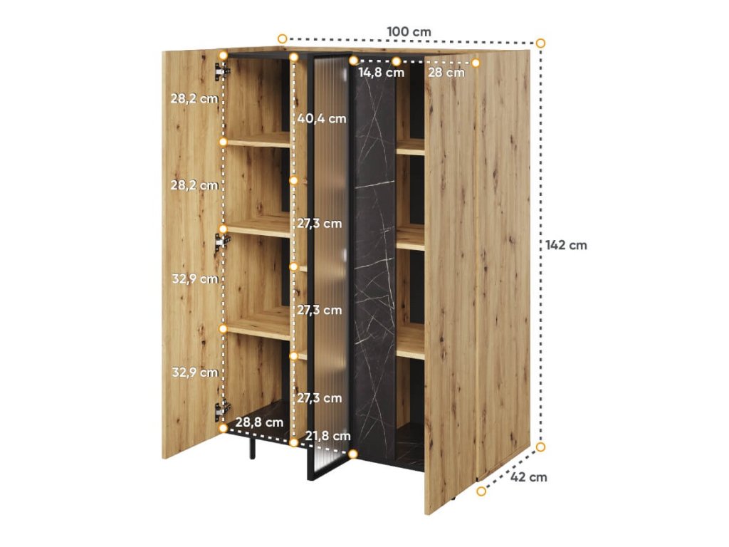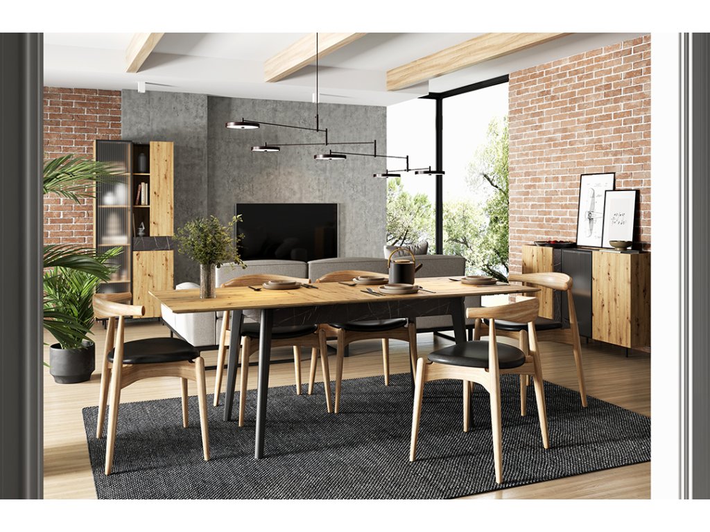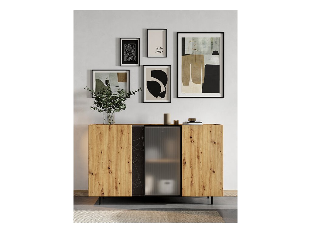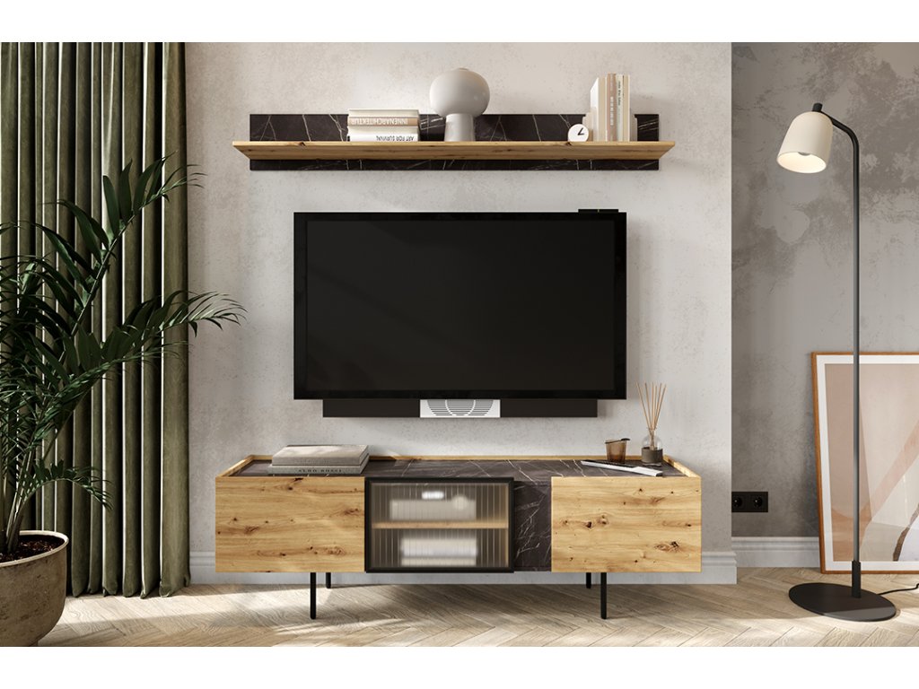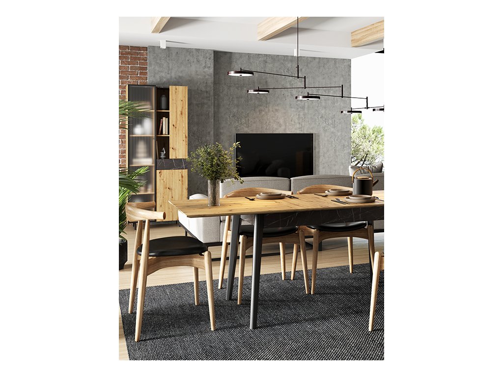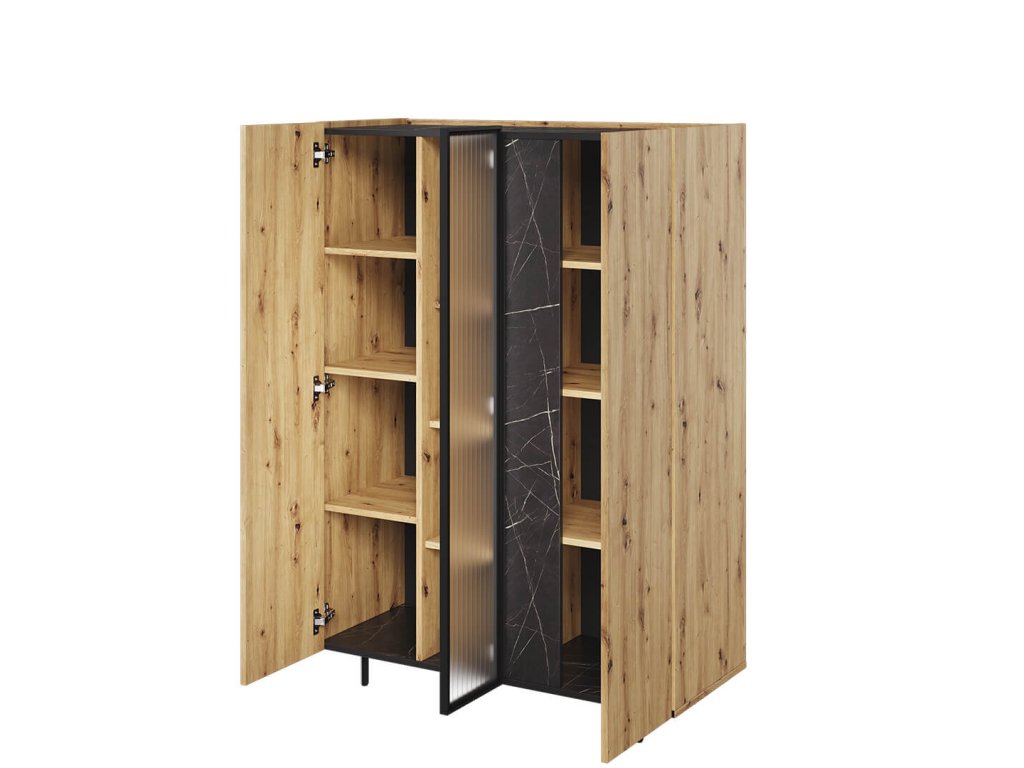 Moderní, propracovaná, jednoduchá a zároveň výrazná kolekce MARMO je promyšlena do posledního detailu. Teplý dekor dubu je kombinován s elegantním mramorovým vzorem a stylovými vysokými nožičkami v černé barvě. Nadčasovým kouskem jsou i poloprůhledná dvířka v černém rámu. Díky vyzvednutým stranám korpusu vzniká na nábytku praktický odkládací prostor. V interiéru krásně vynikne také oblíbené bezúchytové provedení. Zařiďte si interiér vkusně, nápaditě a stylově s kolekcí MARMO.