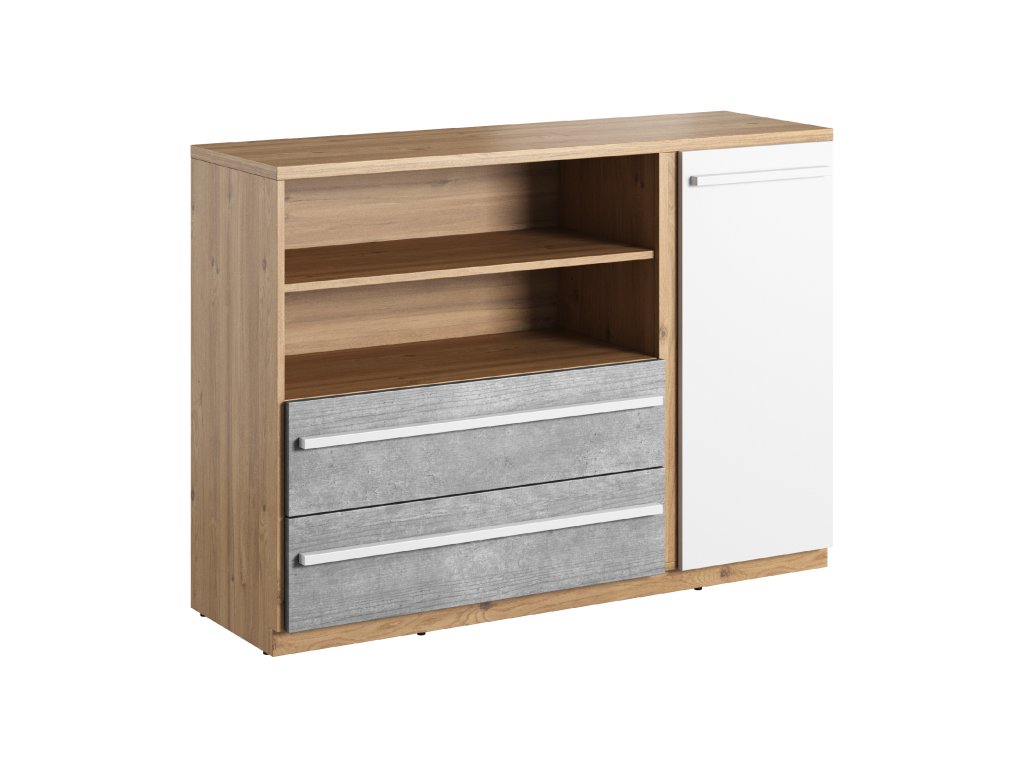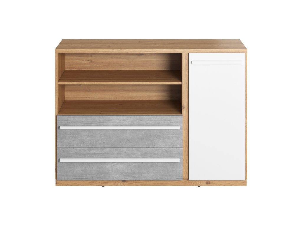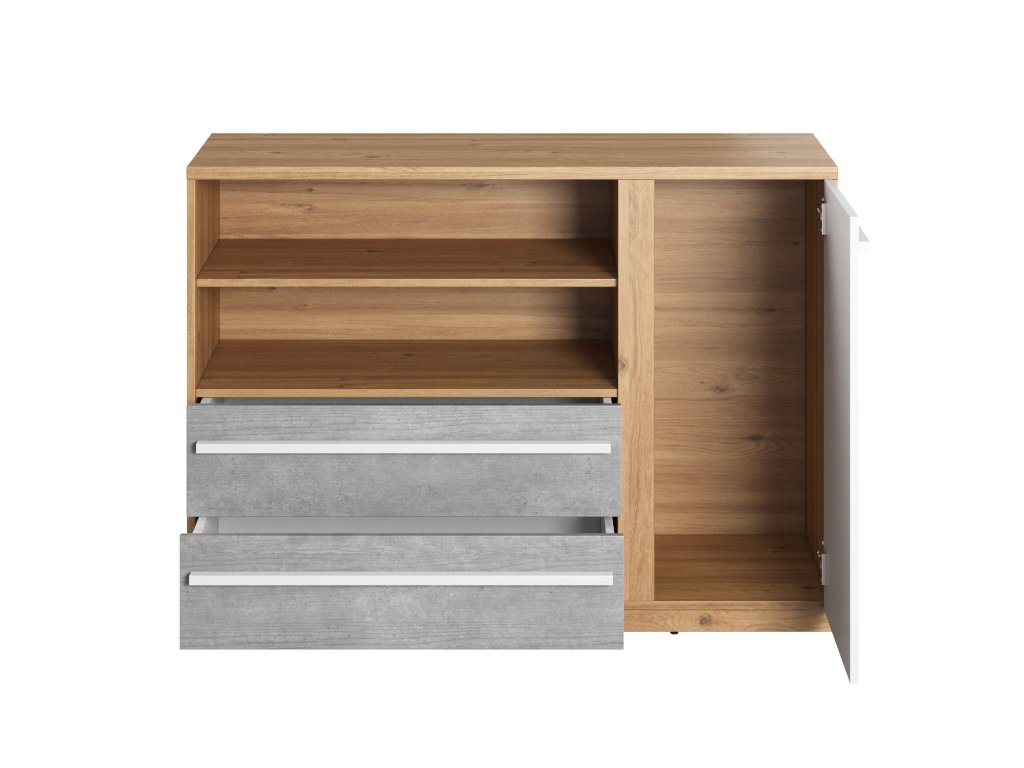 Komoda PLANO má 1 dvířka a 2 zásuvky.