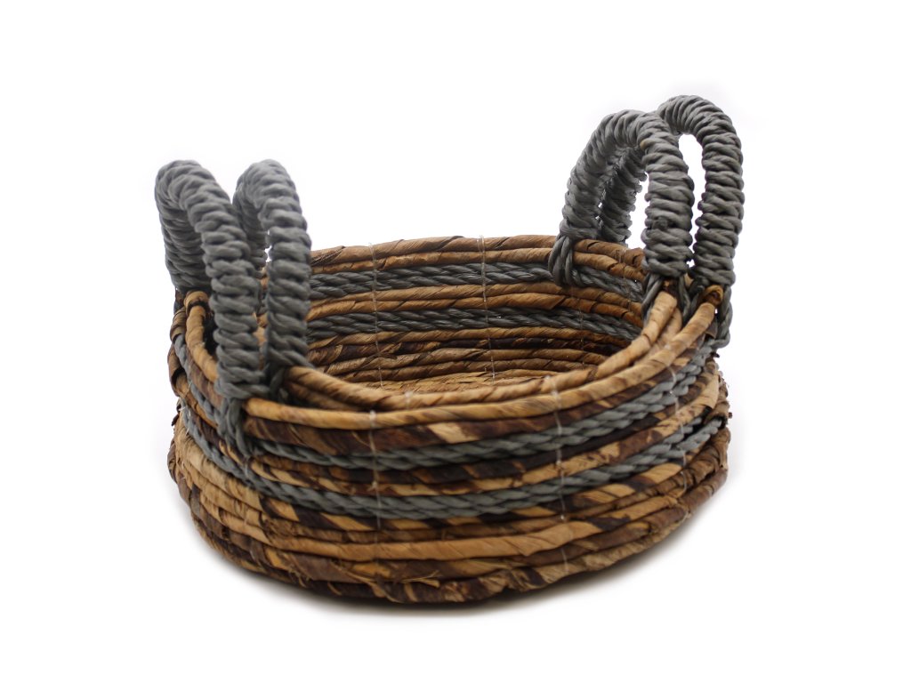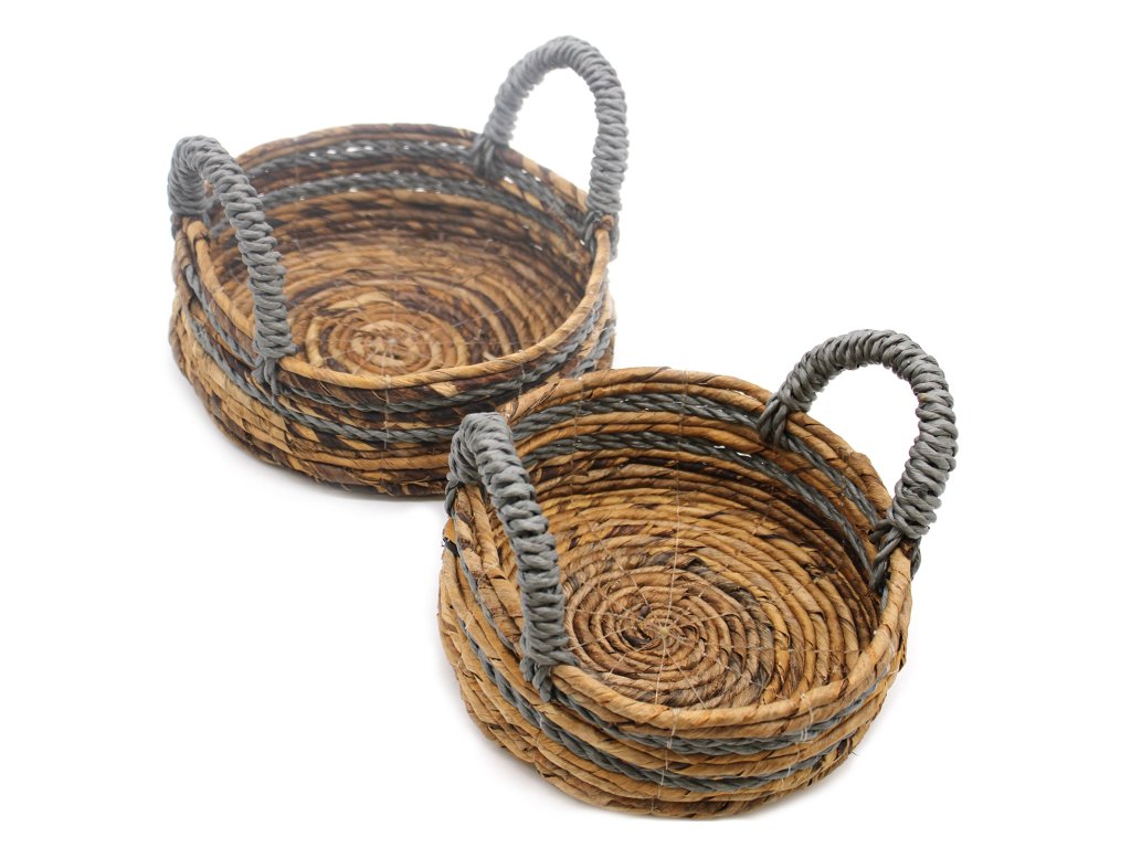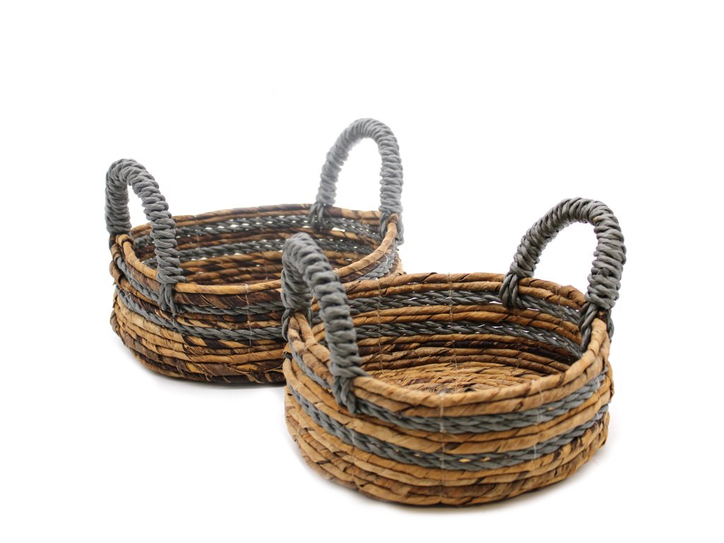 Košík z Banánových Listů a Sivé Raffie - Souprava 2 Kusů