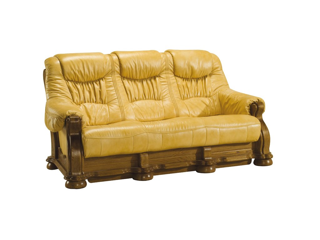 Sedací kožená souprava CEZAR I 3 + 2 + 1 s pružinovým sezením. Elegantní sedačka pasuje ke klasickému / stylovému zařízení. 3-sedák je možno objednat také i jako rozkládací na příležitostní spaní nebo bez rozkladu. Sedací soupravu lze koupit taky v rohové verzi- viz. související produkty níže