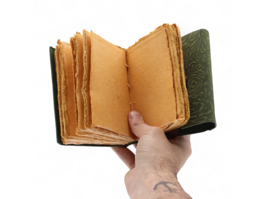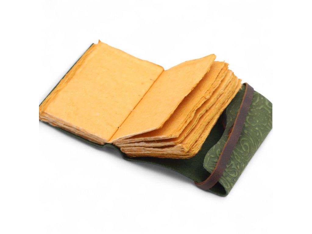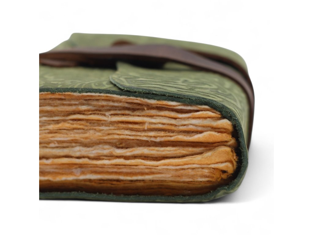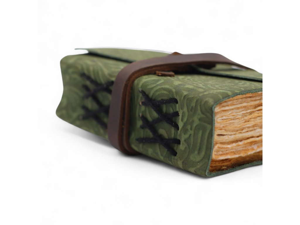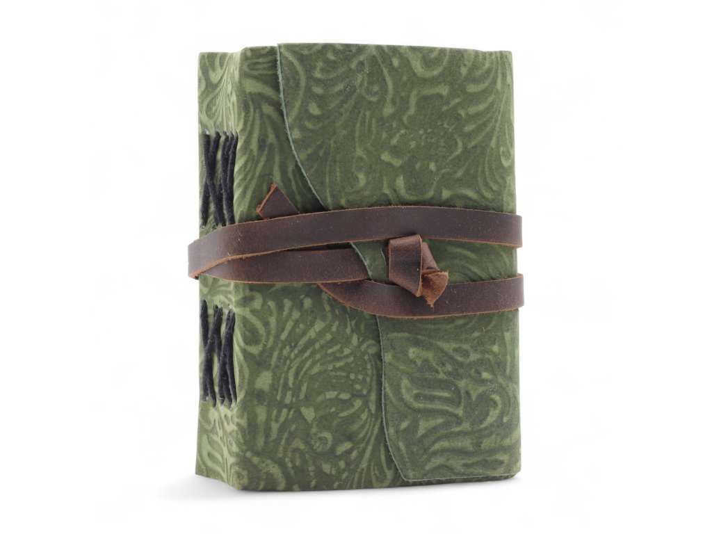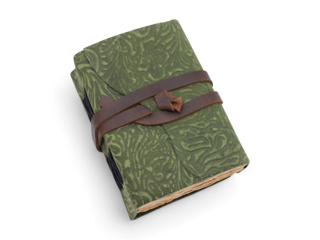 Kožený Zápisník se Zdobeným Okrajem (5x3.5") - Green Maze Pattern