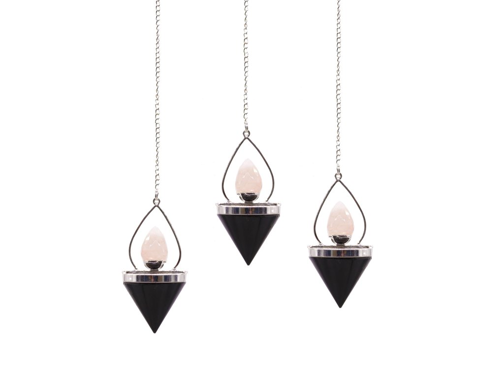Kyvadlo Lucerna Života z Drahých Kamenů - Černý Achát a Růženín