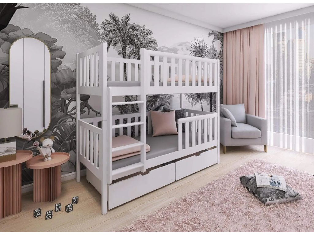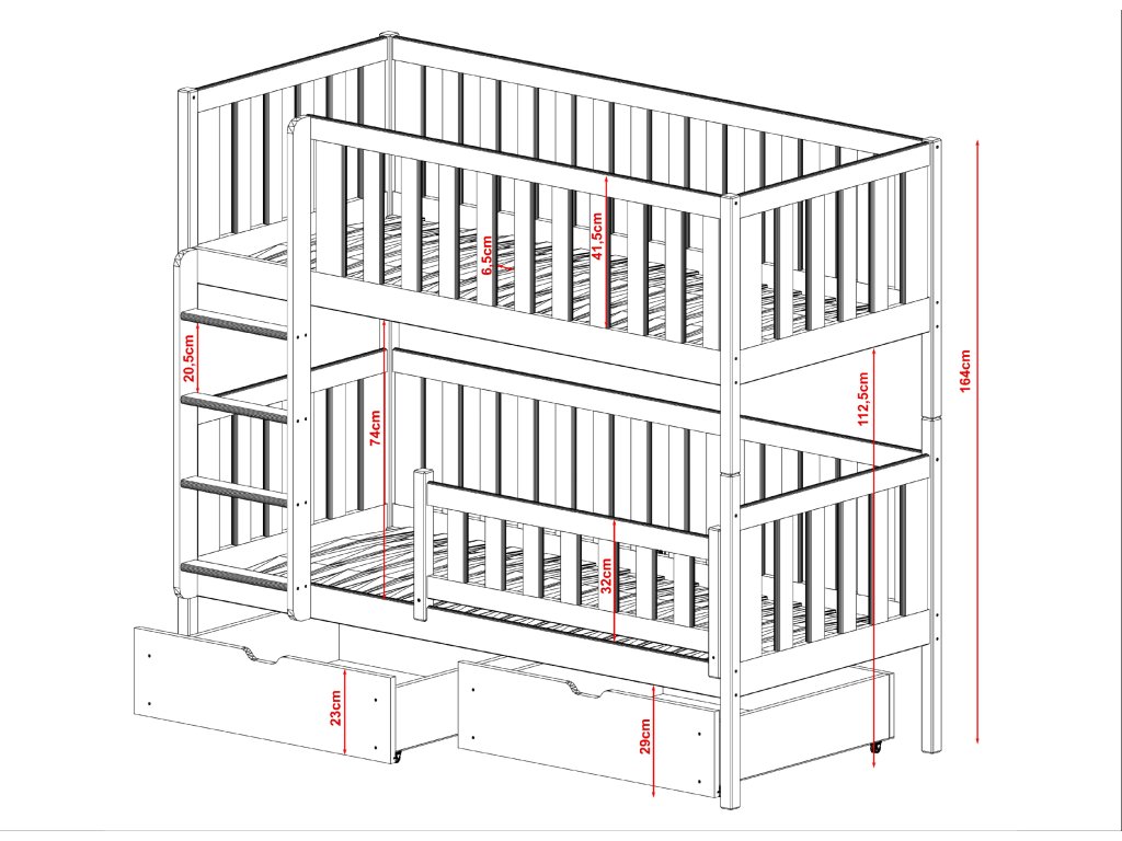 Patrová postel Michalina je pohodlnou variantou přespání pro tři mladé uživatele. Nábytek se doporučuje do malých interiérů, kde je úspora místa velmi důležitá. Michalina se liší od tradiční patrové postele s další spací částí. Lze jej kdykoli zasunout nebo vysunout. Spodní a horní plochy byly chráněny zábradlím. Pod celou věcí jsou umístěny dvě zásuvky. Model je dostupný v mnoha zajímavých odstínech.Doplňkové parametry