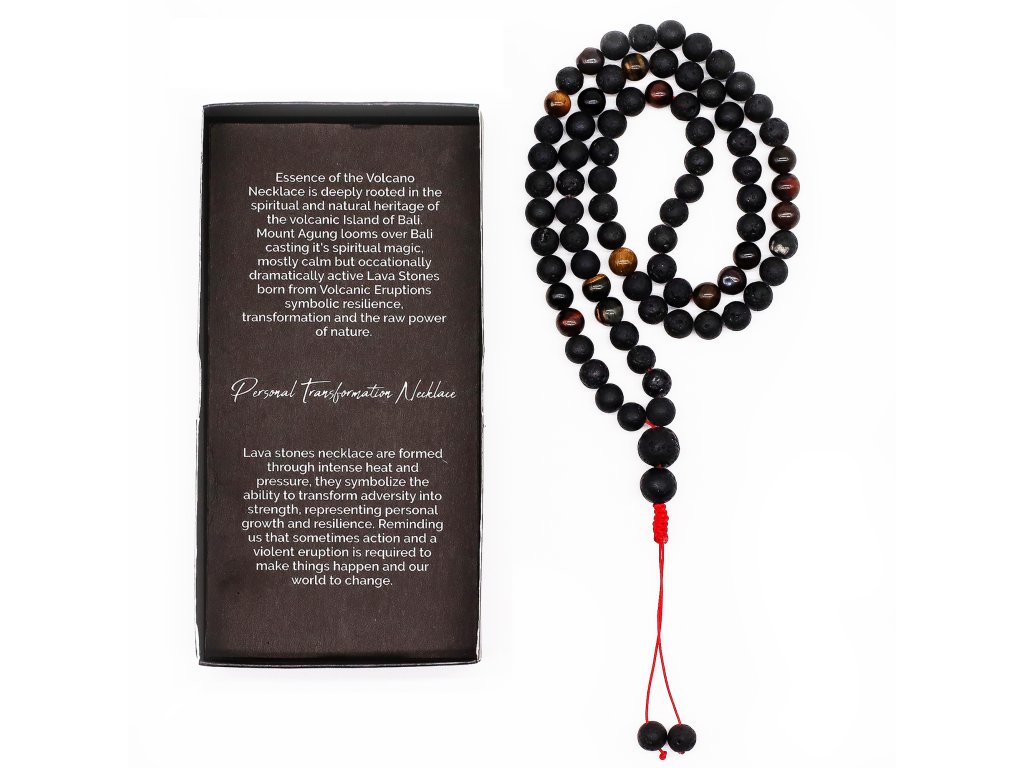 Náhrdelník Osobní Transformace, vyrobený z přírodních lávových kamenů kovaných intenzivním teplem a tlakem, symbolizuje sílu, odolnost a schopnost proměnit výzvy v osobní růst. Tento náhrdelník, ozdobený korálky Tygří oko a zakončený výraznou červenou šňůrkou, vyzařuje uzemňující a posilující energii a slouží jako připomínka toho, že změna přichází skrze odvážné činy a odvahu. Je ideální jako velkoobchodní produkt a má dárkové balení s duchovním významem vytištěným uvnitř krabičky, což usnadňuje jeho vystavení a prodej. Tento kousek je ideální pro obchody zaměřené na wellness, spiritualitu nebo ručně vyráběné šperky. Vyniká stylovým a hluboce smysluplným dojmem. Připravený k darování a k maloobchodnímu úspěchu – zajistěte si svůj ještě dnes! Délka: přibližně 42 cmDoplňkové parametry