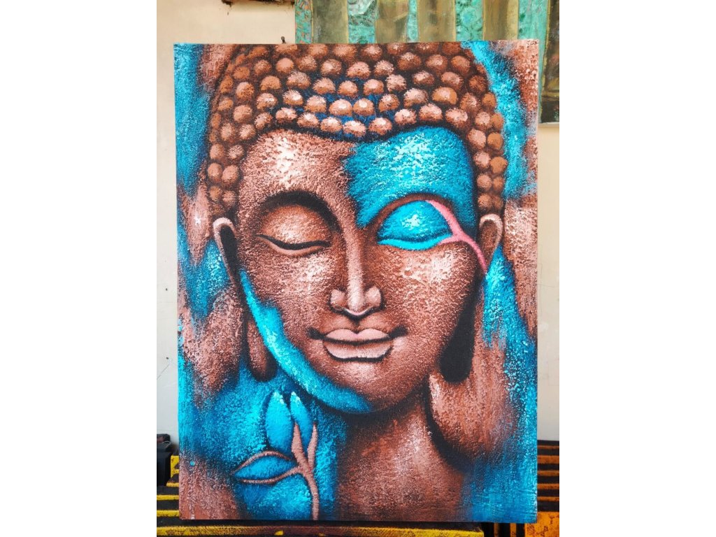Design obrazů Buddhy v bronzovém a modrém květu spojuje expresivní barevné tóny s nadčasovým půvabem Buddhových obrazů, díky čemuž je vhodný do prostor, které těží z výraznější dekorativní přítomnosti a zároveň si zachovávají klidnou atmosféru. Umělecké dílo je určeno do oblastí, kde nástěnná dekorace hraje roli při utváření atmosféry, jako jsou výrazné stěny, tiché místnosti nebo interiéry maloobchodních prodejen. Každý obraz je ručně vyroben balijskými řemeslníky individuálně, což zajišťuje charakter a autenticitu celé řady. Obraz je zakončen robustním dřevěným rámem a zadními háky pro snadnou instalaci.Doplňkové parametry