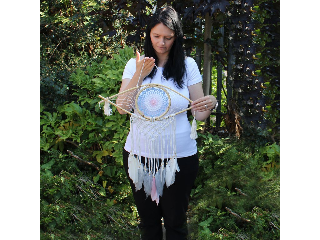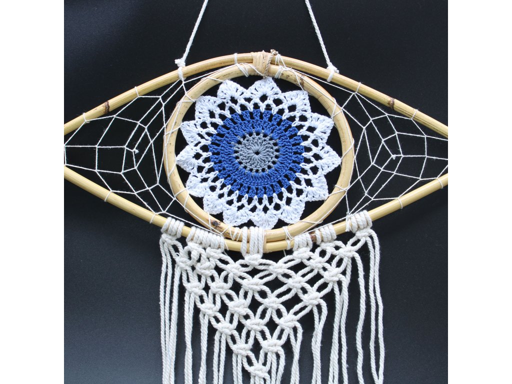 Ochranný Lapač Snů - Střední - Macramé Oko - Bílá / Modrá / Šedá