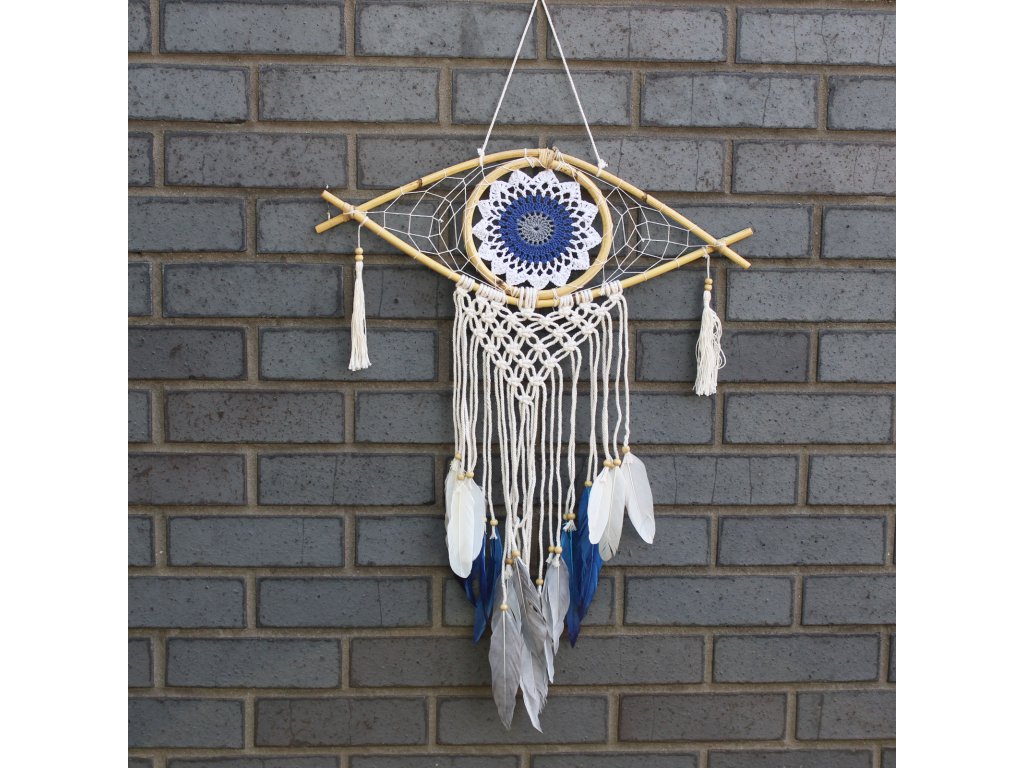 V mnoha starověkých kulturách je Oko symbolem ochrany před zlem. Vaši zákazníci si tyto lapače snů můžou pověsit v ložnici, aby je chránili před nočními můrami - dobré sny procházejí lapačem snů a špatné se zamotají do sítě a zahynou při prvním svítání.Rozměry: rám 52x1x19cms pírky: 52x1x19x64cmDoplňkové parametry