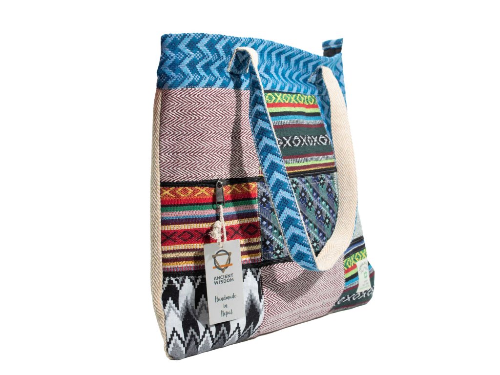 Patchworková taška Kathmandu – Dhaka Design je lehká taška pro každodenní nošení vyrobená z odolné směsi konopí a bavlny. Její plochý tvar umožňuje snadné použití, vystavování a je ideální pro zákazníky, kteří hledají uvolněnou alternativu ke strukturovaným taškám. Přední strana je zdobena patchworkovou směsí tkaných panelů inspirovaných Dhákou, která každé tašce dodává ručně vyráběný vzhled a silný vizuální dopad. Kombinace vzorů a textur vytváří zajímavý dojem, aniž by byla příliš výrazná, a proto je vhodná do široké škály maloobchodních prostředí.Rozměry: 37x38x2 (cm)Doplňkové parametry