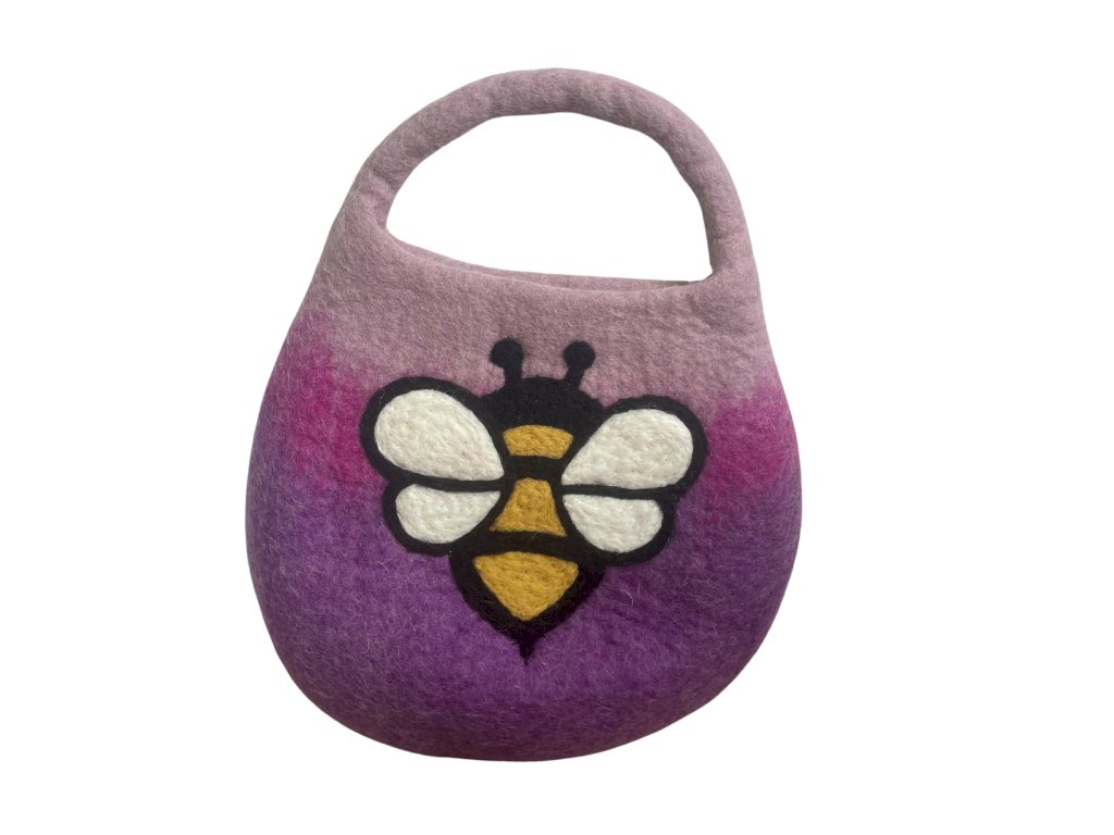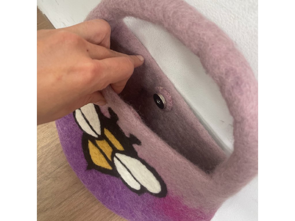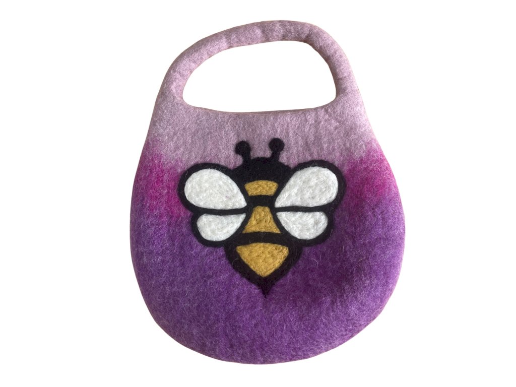 Plstěná Taška s Rukojetí s Magnetem - Včely - Levandulové Stíny