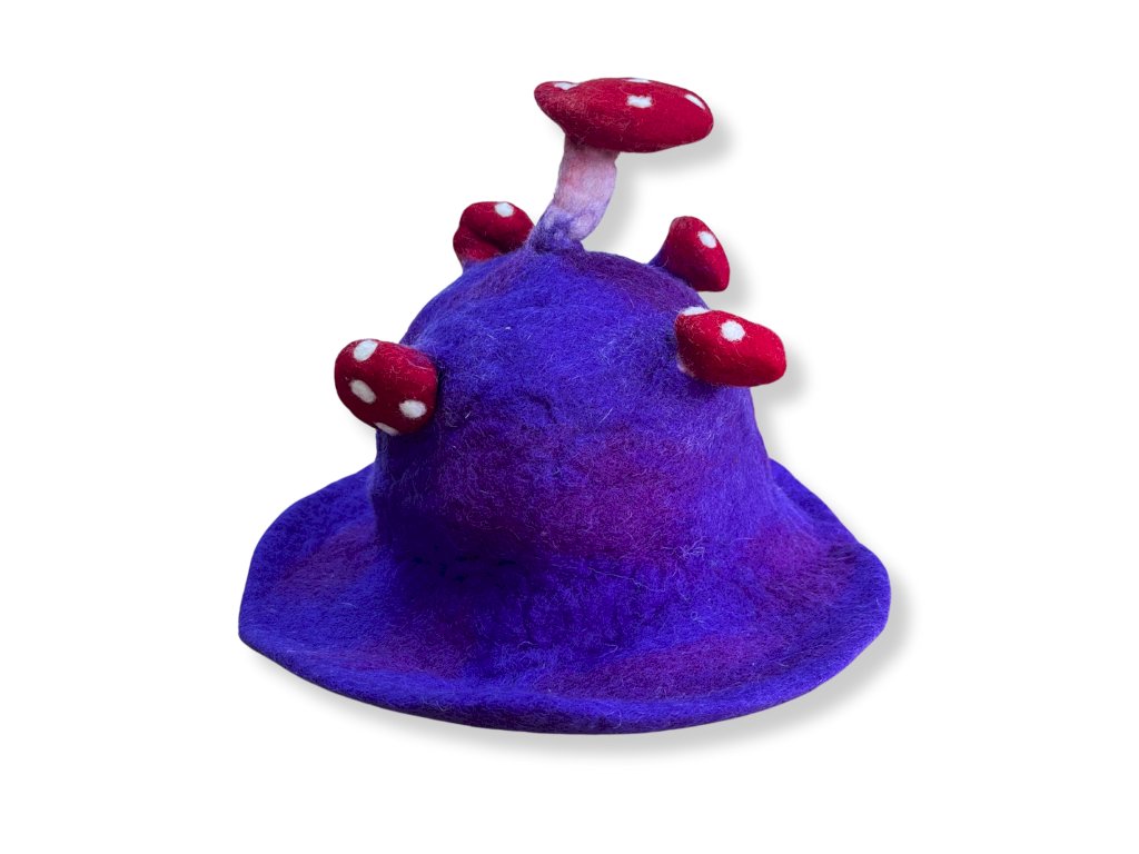 Plstěný Klobouk s Houbami - Velmi Fialová