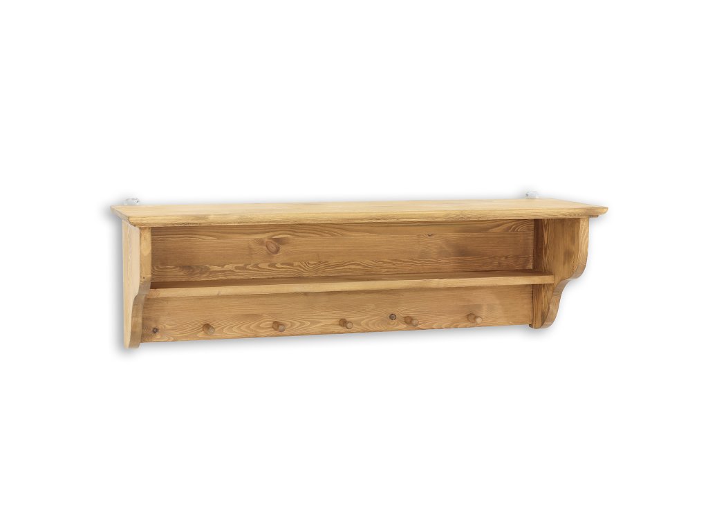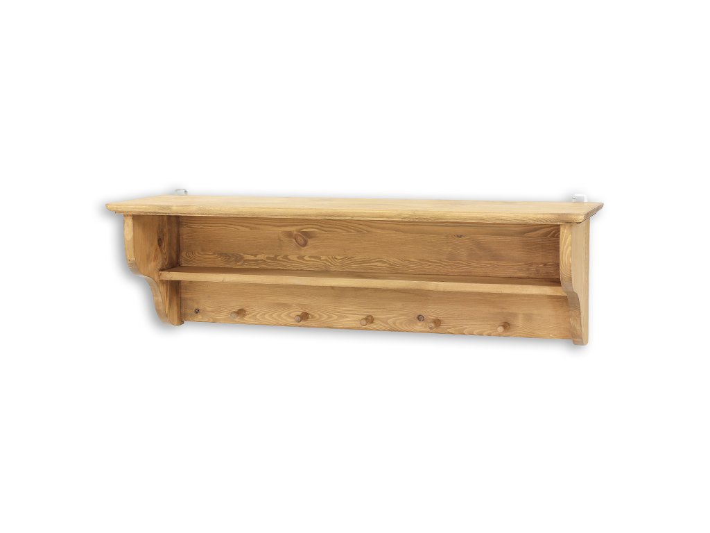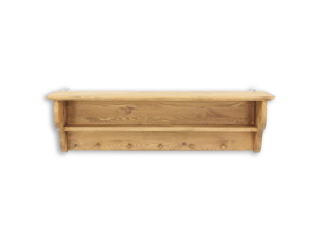 Závěsná voskovaná police PK700 je navržena v rustikálním stylu a celá vyrobena z masivního borovicového dřeva. Skládá se z otevřené police a pěti dřevěných věšáků. Skvěle poslouží v předsíni jako doplňkové místo pro uložení svrchního oblečení. Police je zakončena originálními řezbami. Viditelná vlákna zdůrazňují krásu přírodního dřeva. PK700 dodá každému interiéru jedinečnou atmosféru, plnou vřelosti a rodinné atmosféry. Díky jeho funkčnosti bude skladování mnohem jednodušší. Nábytek je pokryt přírodním včelím voskem, který vytváří vrstvu, která chrání před vlhkostí a zároveň dřevo vyživuje. Díky voskování zvýrazníme přirozenou strukturu dřeva a prohloubíme jeho přirozenou barvu. Včelí vosk je přírodní produkt, voskovaný nábytek tak získává antistatické vlastnosti – méně se na jeho povrchu usazuje prach. Další výhodou voskovaného nábytku je jeho hedvábně hladký povrch a příjemná vůně přírodního dřeva. Udržení zdravé struktury dřeva je základem dlouhé životnosti voskovaného nábytku. V záložce "Údržba a používání voskovaného nábytku" najdete cenné rady k pravidlům péče o nábytek z kolekce Rustikal.
