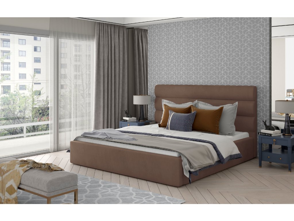 Postel Caramel - kovový rám, plynový výtah, úložný prostor