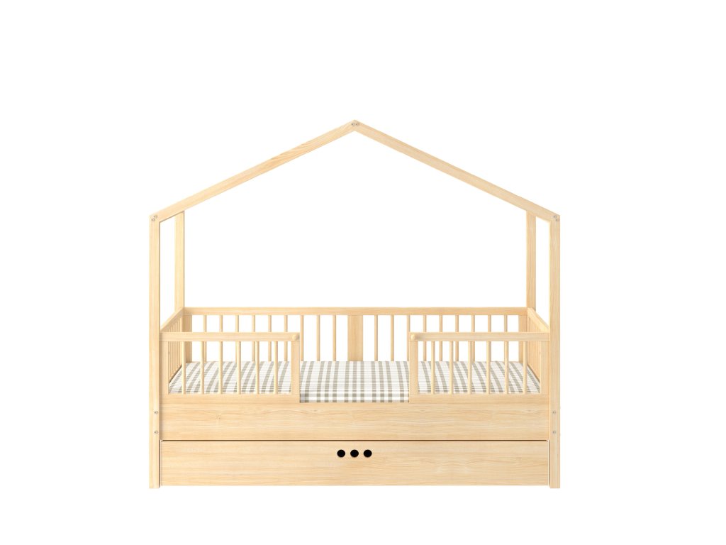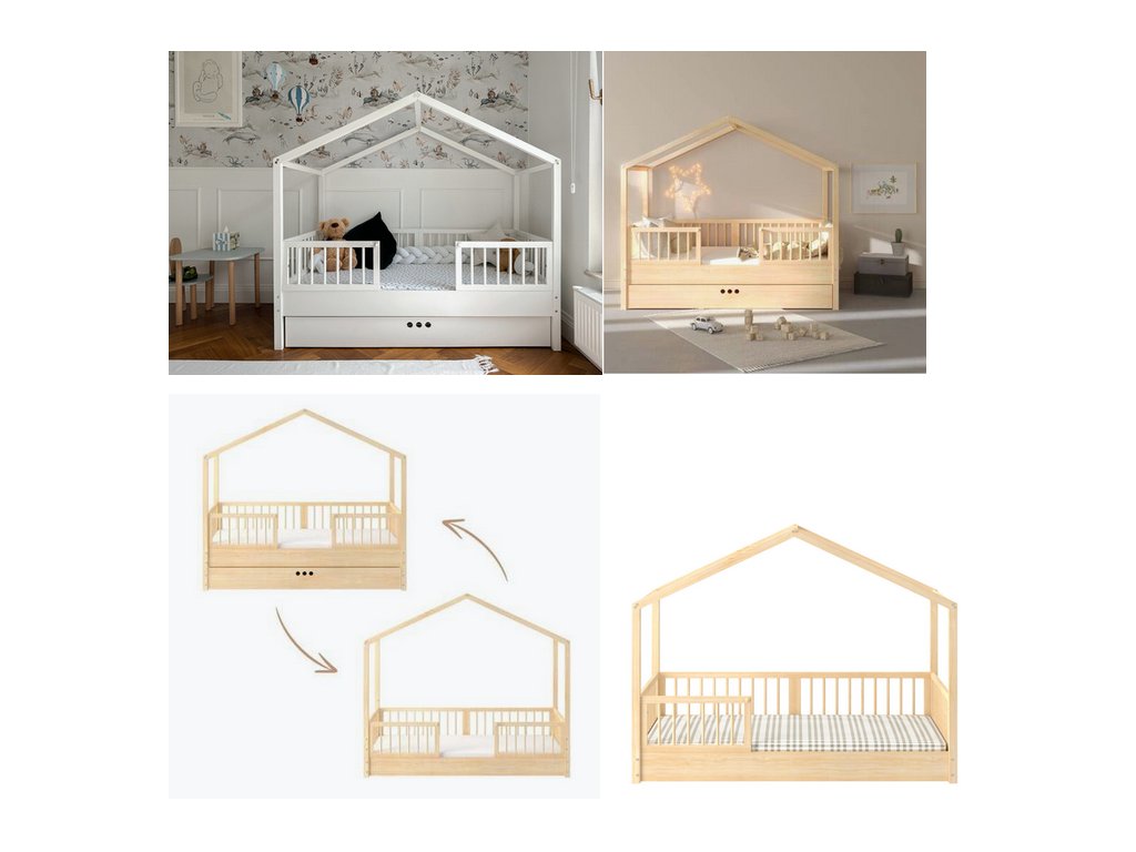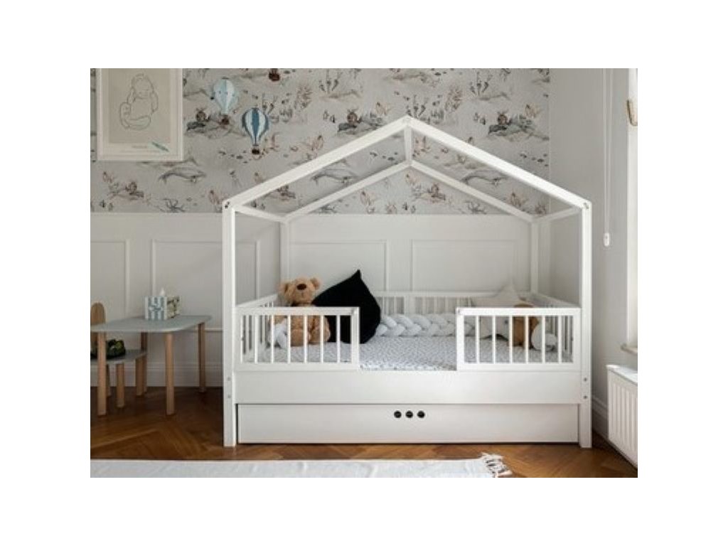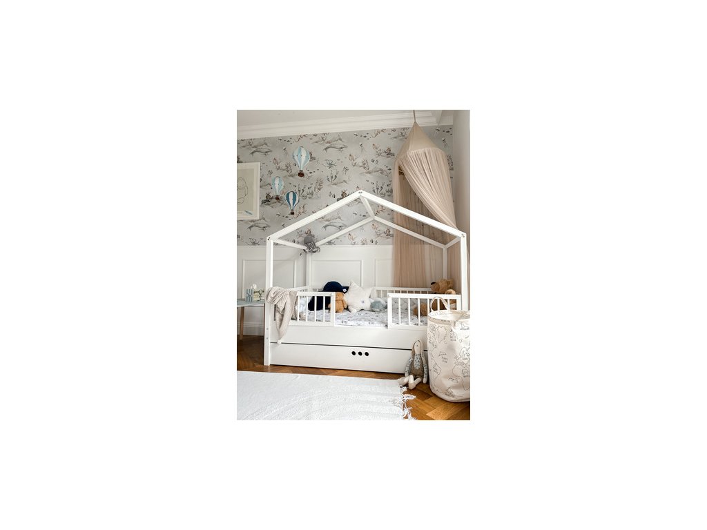 Ochranné kolejničky: Pro větší ochranu dítěte a rodičovský klid je Dream Nest vybaven 2 bezpečnostními kolejničkami, které účinně zabraňují vypadnutí dítěte během spánku. Kolejnice mají malé madlo, které zvyšuje funkčnost a kouzlo postele. Rukojeť může sloužit jako věšák na oblíbené hračky, deky nebo hrací skříňky, spojující estetiku s praktickým využitím v dětském pokoji (volitelně).