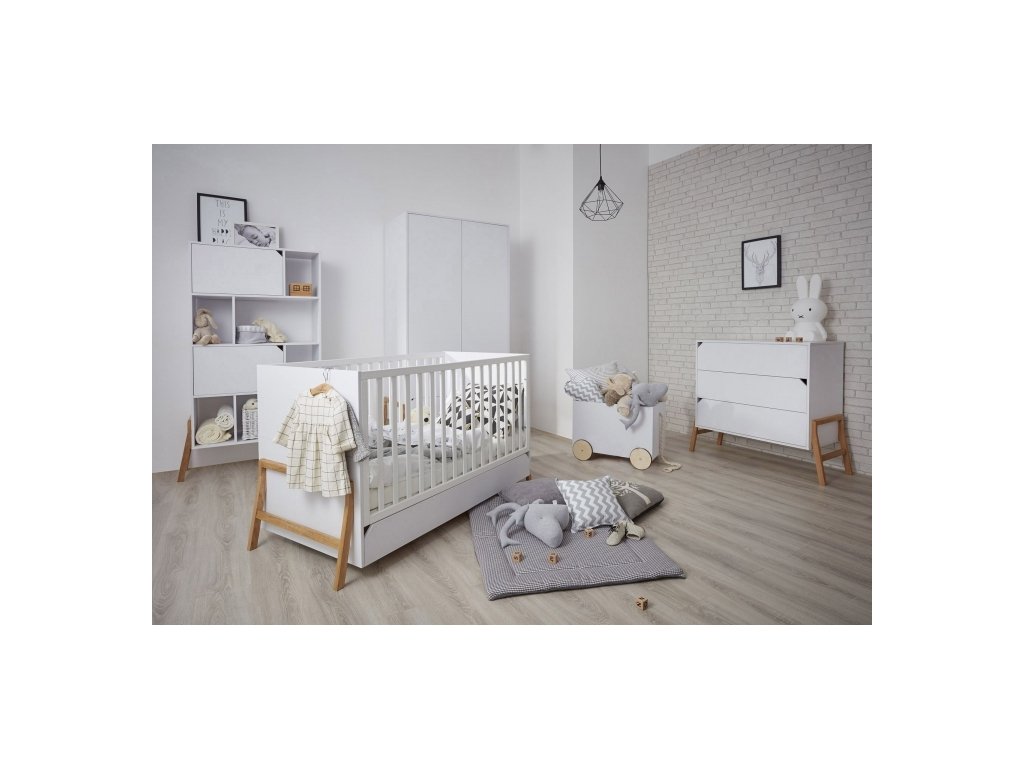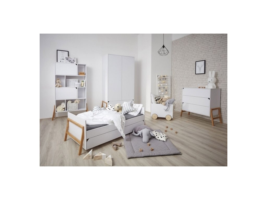 LOTTA - tato kolekce nábytku je ideální volbou pro rodiče, kteří hledají nábytek s moderním, originálním designem, a také nábytek praktický. Hlavním znakem jsou jednoduché vysoké dubové nožky u jednotlivých segmentů nábytku, kdy v kombinaci tohoto masivního dřeva se svou krásnou kresbou a elegantní sněhově bílou matovou barvou vyjadřuje lehkost a nadčasovost této kolekce. Velkou výhodou tohoto řešení je snazší udržování pořádku a čistoty, což ocení především rodiče dětí s alergiemi.