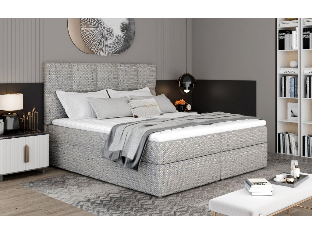 Glossy je exkluzivní, vkusná, prostorná a vhodně profilovaná postel Boxspring určená pro znalce nadprůměrného pohodlí ve dne i v noci. Pohodlný a plnohodnotný spánek na posteli Glossy zaručí kombinace 15 cm vysoké pružinové matrace Bonnell a 4 cm vysokého topperu. Tato kombinace zajišťuje zdravý spánek a také správné vyrovnání páteře ve správné poloze. Glossy je funkční postel mimo jiné díky dvěma velkým kontejnerům na lůžkoviny a také velkému prostoru pro relaxaci - je dostupná ve třech rozměrech: 145/165/185 x 200 cm. Mezi další vlastnosti tohoto modelu patří vysoký sedák, 3 cm nohy a originální lesklý design. Jednoduchý tvar vysokého čela postele je obohacen o kostkované prošívání, které dodává celé konstrukci jedinečné kouzlo. Lesklá je postel, která potěší a potěší. Vyplatí se je mít v ložnici.Doplňkové parametry