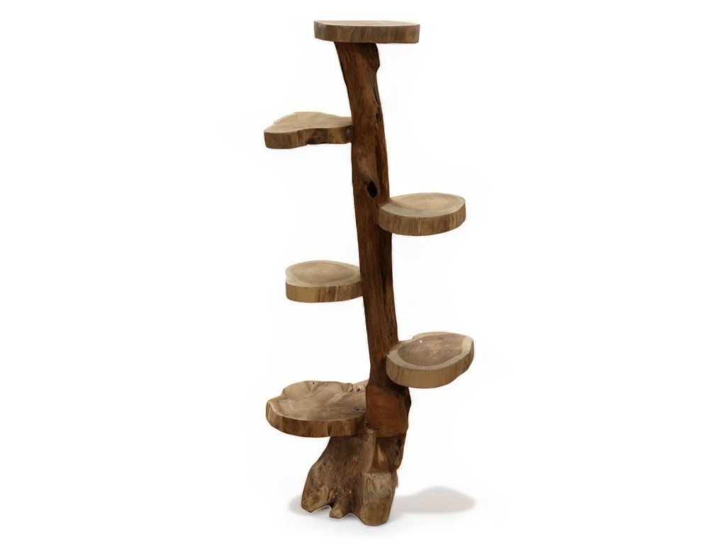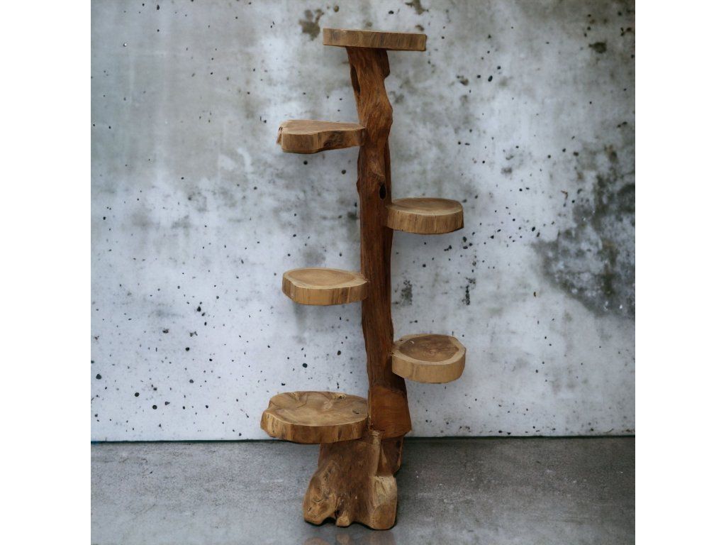 Přírodní teakový regál se 6 policemi, výška 120 cm
