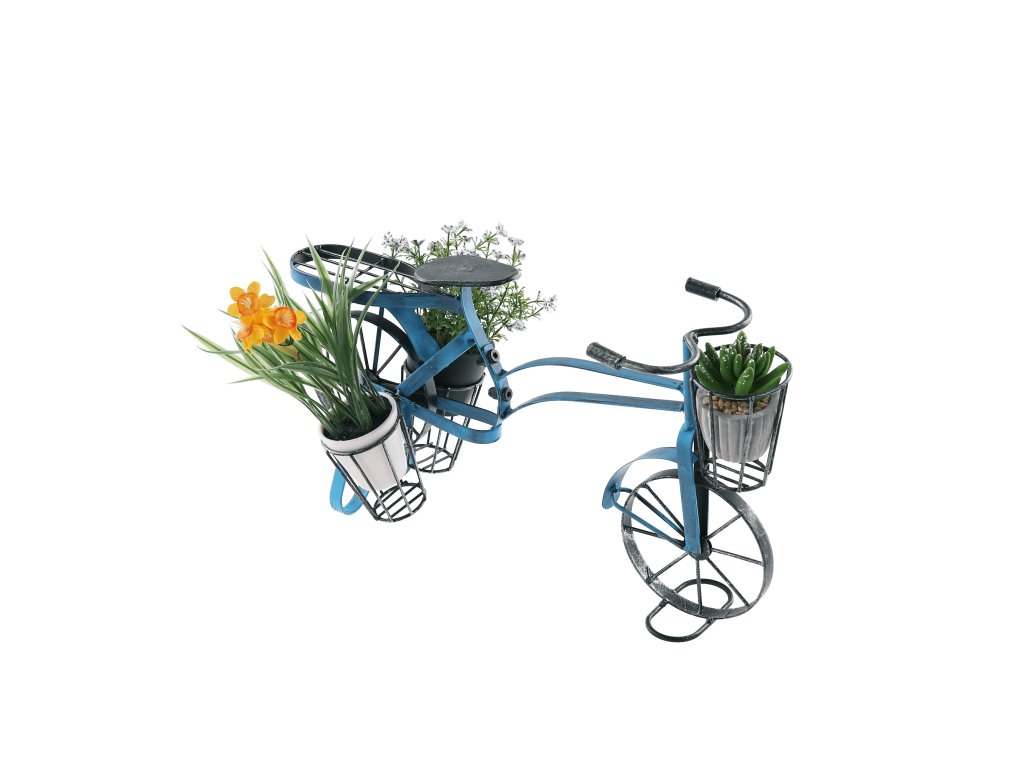 Materiál: kov Barva: černá / modrá Rozměry (ŠxHxV): 42x16x24 cm V retro stylu Se třemi koši na rostliny Vhodný jako dárek Na terasu, balkon, zahradu Dodávané v monte