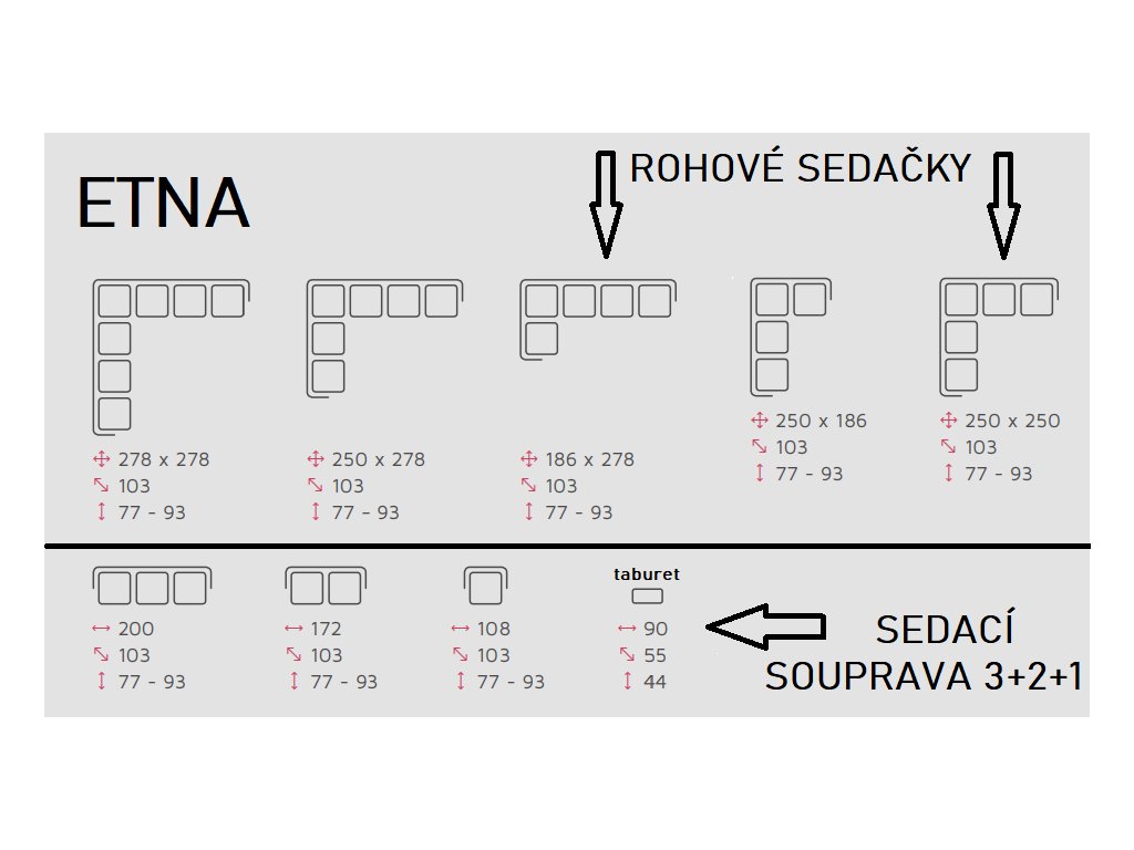 → k sedačce lze přikoupit navíc originál taburet ETNA (55x90cm) za příplatek 9010kč včetně DPH - v případě zájmu napište do poznámky v objednávce