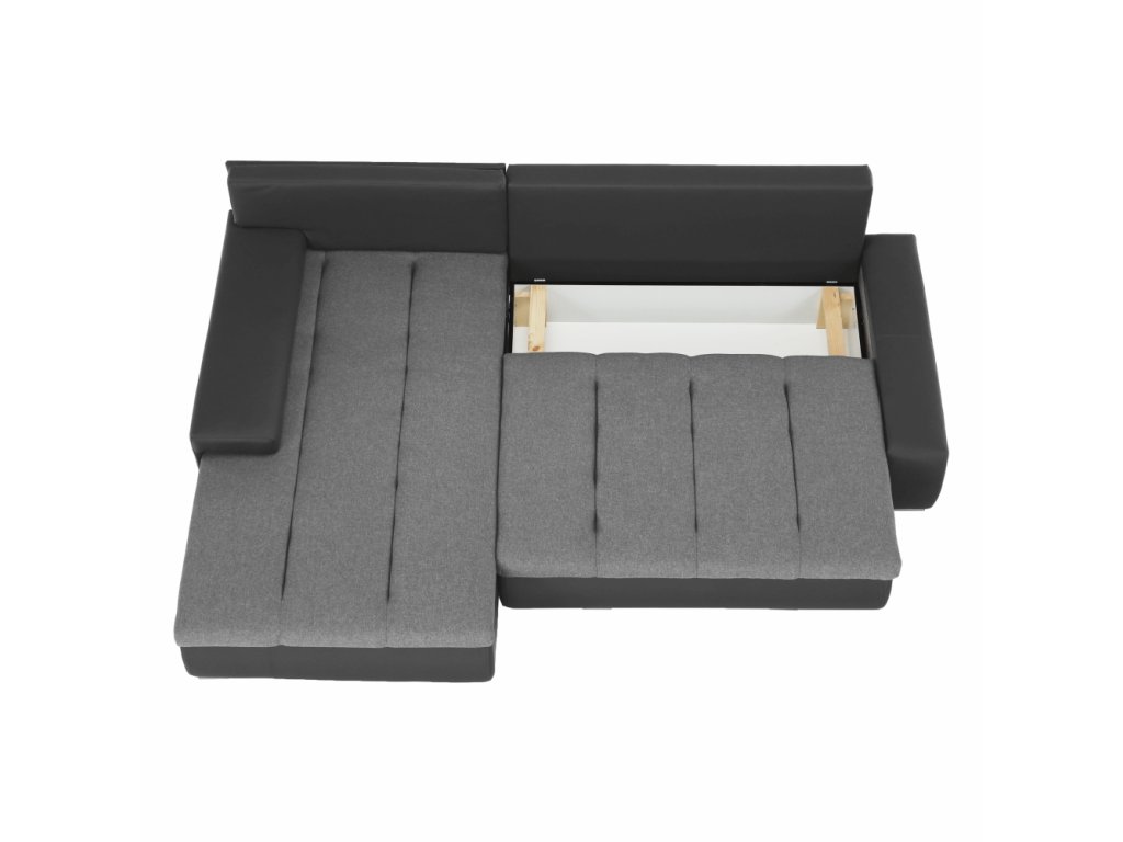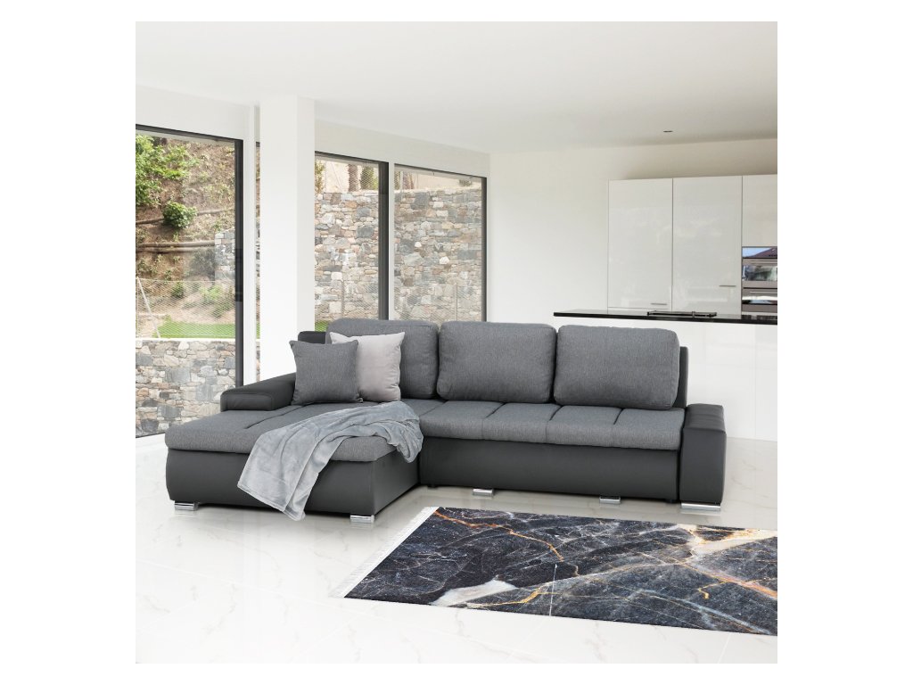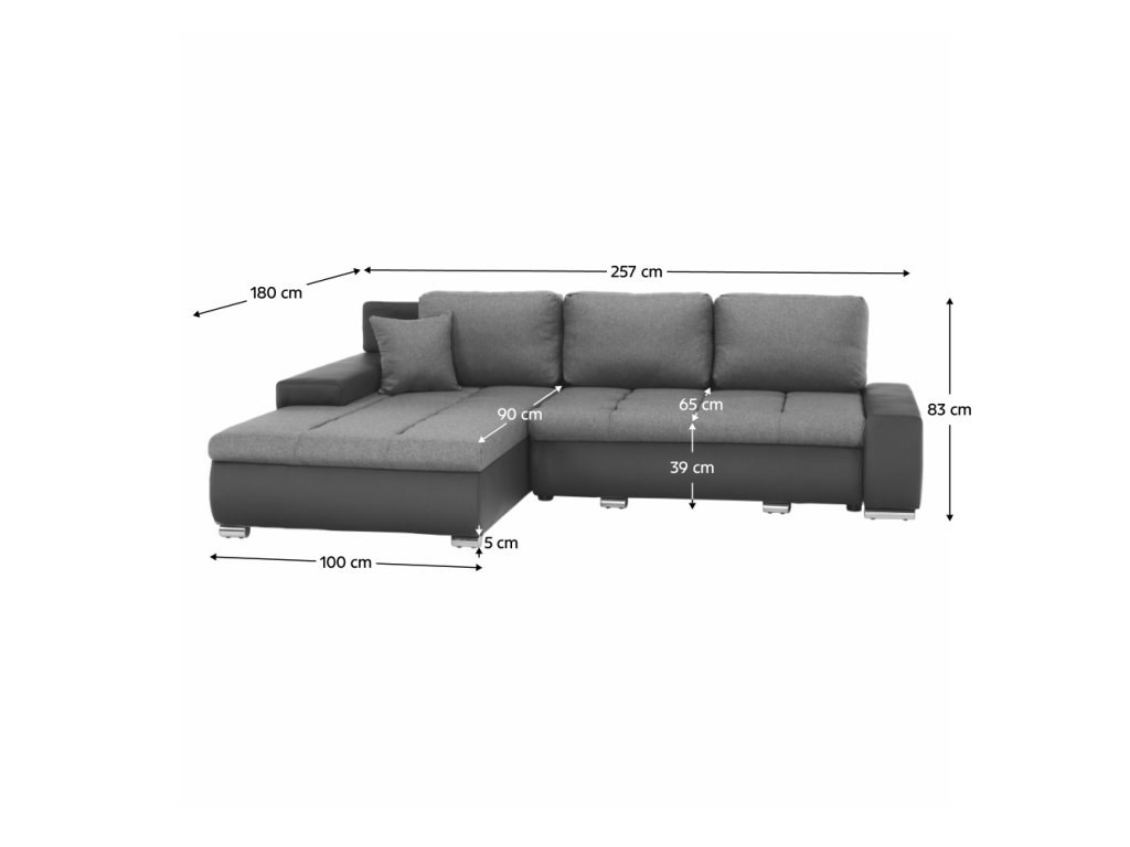Univerzální (L / P) rohová rozkládací sedací souprava s úložným prostorem Materiál: látka SAVANA/ ekokůže Barva: šedá Rozměry (ŠxHxV): 257x180x83 cm, spaní: (ŠxD): 149x206 cm Výška spodního prostoru od podlahy: 5 cm Dodávané v demontuBalení (počet kusů : 3)