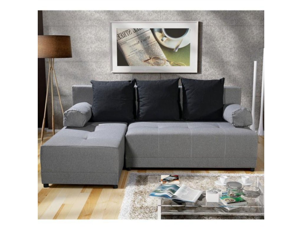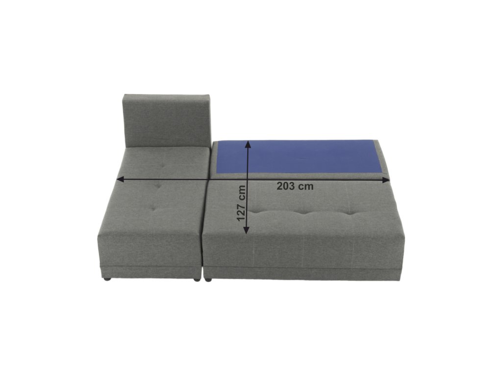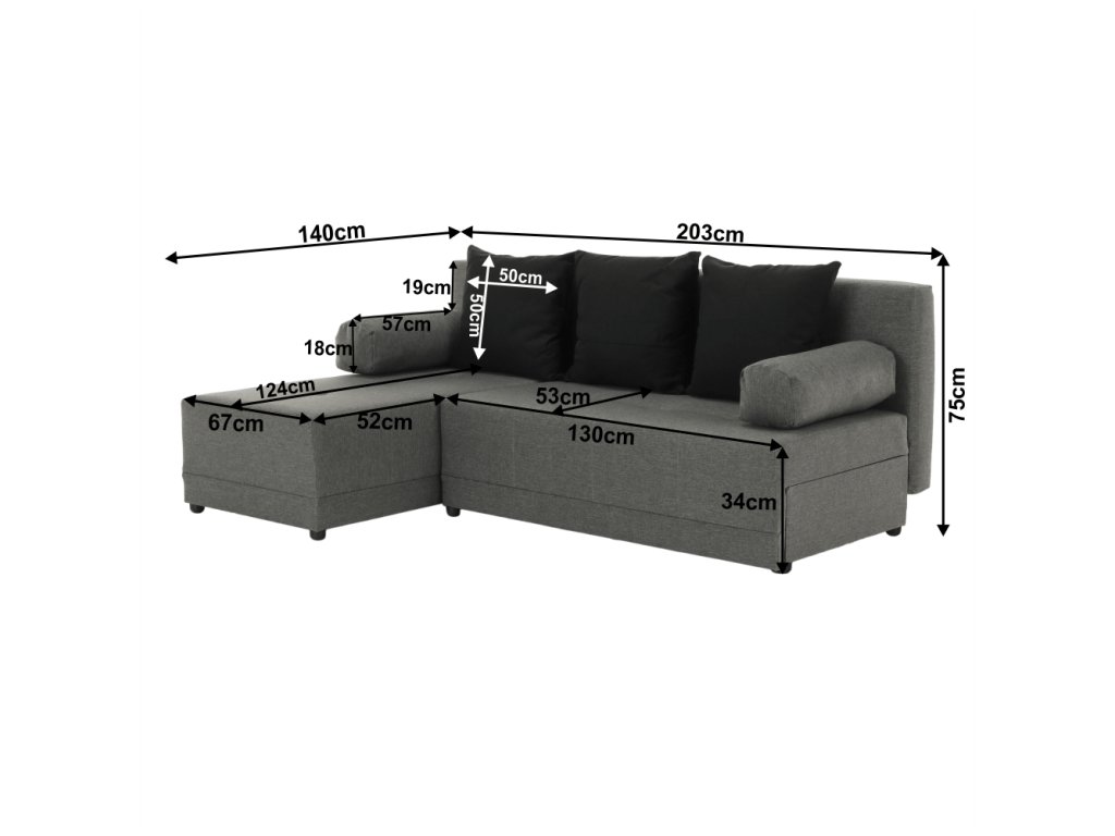 Materiál: látka Barva: šedá / černá Rozměry: ŠxHxV: 203x140x75 cm Plocha na spaní: ŠxD: 127x203 cm Výška sedu: 39 cm Hloubka sedu: 53/82 cm Výška spodního prostoru od podlahy: 4 cm Výplň: molitán Nosnost na osobu: 90 kg Polštář (ŠxV): 40x40 cm 3 + 2 polštáře. Dodávané v demontu. Možnost objednání z vyobrazených barevných provedení v ceně 13.790 Kč.Při individuální objednávce je třeba zaplatit 20% zálohu z dané částky. Po uhrazení zálohy bude Vaša objednávka zadána do výroby. Doba dodání 6-8 týdnů.Balení (počet kusů : 3)