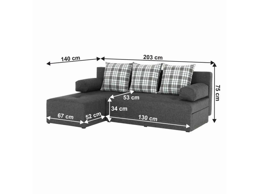 ;"Rohová rozkládací sedací souprava MEXX NEW Materiál: látka Barva: šedý melír / vzor Rozměry: ŠxHxV: 203x140x75 cm, plocha na spaní: ŠxD: 127x203 cm Výška sedu: 34 Hloubka sedu: 53 cm Výška spodního prostoru od podlahy: 4 cm Výplň: molitán 3 + 2 polštáře. Dodávané v demontu. Možnost objednání z vyobrazených barevných provedení v ceně 13.790 Kč.Při individuální objednávce je třeba zaplatit 20% zálohu z dané částky. Po uhrazení zálohy bude Vaša objednávka zadána do výroby. Doba dodání 6-8 týdnů.Balení (počet kusů : 3)