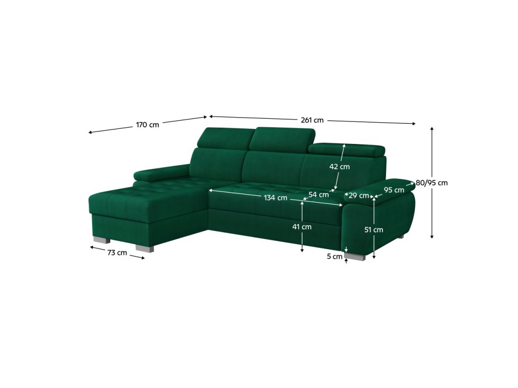 Materiál: látka Kronos 14 Oděruodolnost textilie podle testu Martindale: 60 000 oděrů Barva: zelená Rozměry (ŠxHxV): 261x170x80/95 cm Plocha na spaní (ŠxD): 123x202 cm Výška sedu: 41 cm Hloubka sedu: 54 cm Rozměry otomanu (ŠxH): 73x170 cm Rozměry opěrky na ruku (ŠxHxV): 29x95x51 cm Šířka sedáku: 134 cm Levé provedení Celočalouněná Rozkládací Rohová S úložným prostorem Na nožičkách Materiál nožiček: plast Barva nožiček: stříbrná Výška spodního prostoru od podlahy: 5 cm Výplň: pružina falista/pur pěna Polohovatelné opěrky hlavy 6 stupňové polohování opěrek Praktická Moderní Dodáváno v demontu Nabízíme vám možnost vybrat si ze 6 barevných provedení látky Kronos nebo ze 2 barevných provedení látky Paros za cenu 26 690 Kč.. Při individuální objednávce je třeba zaplatit 20% zálohu z dané částky. Po uhrazení zálohy bude Váš požadavek zadán do výroby. Dodací lhůta 6-8 týdnů.Balení (počet kusů : 3)
