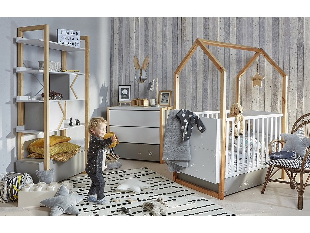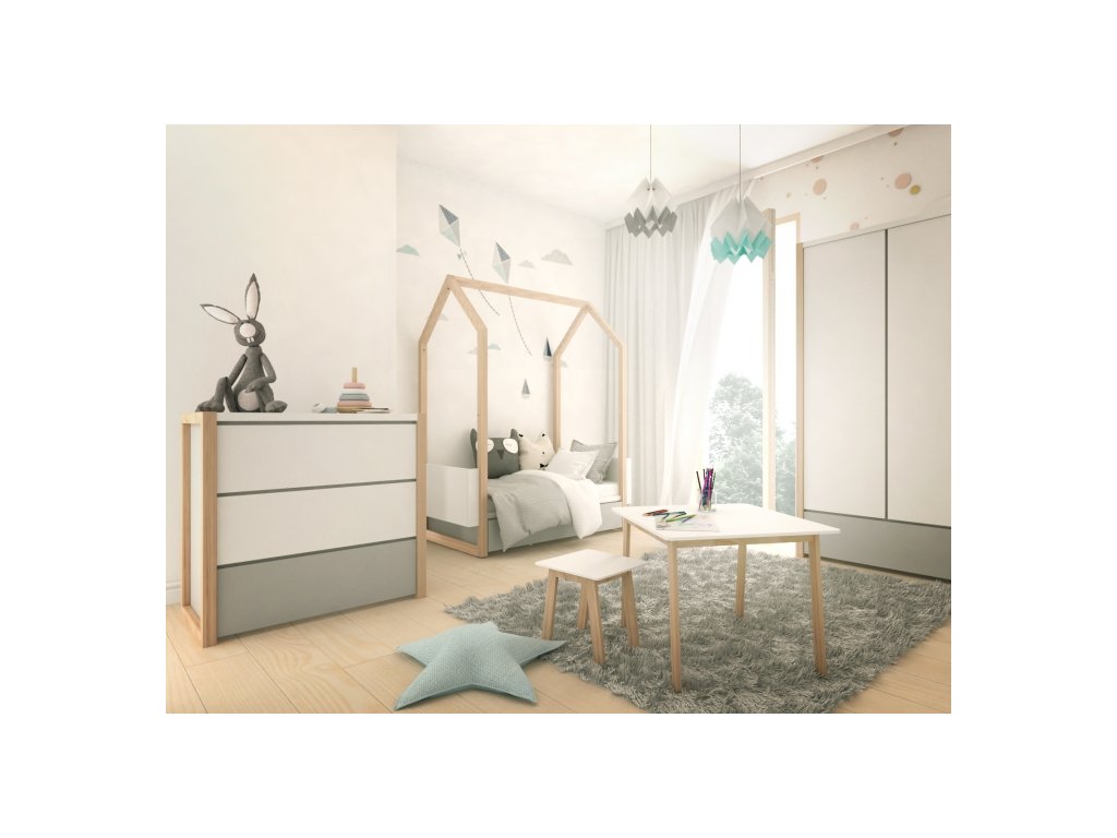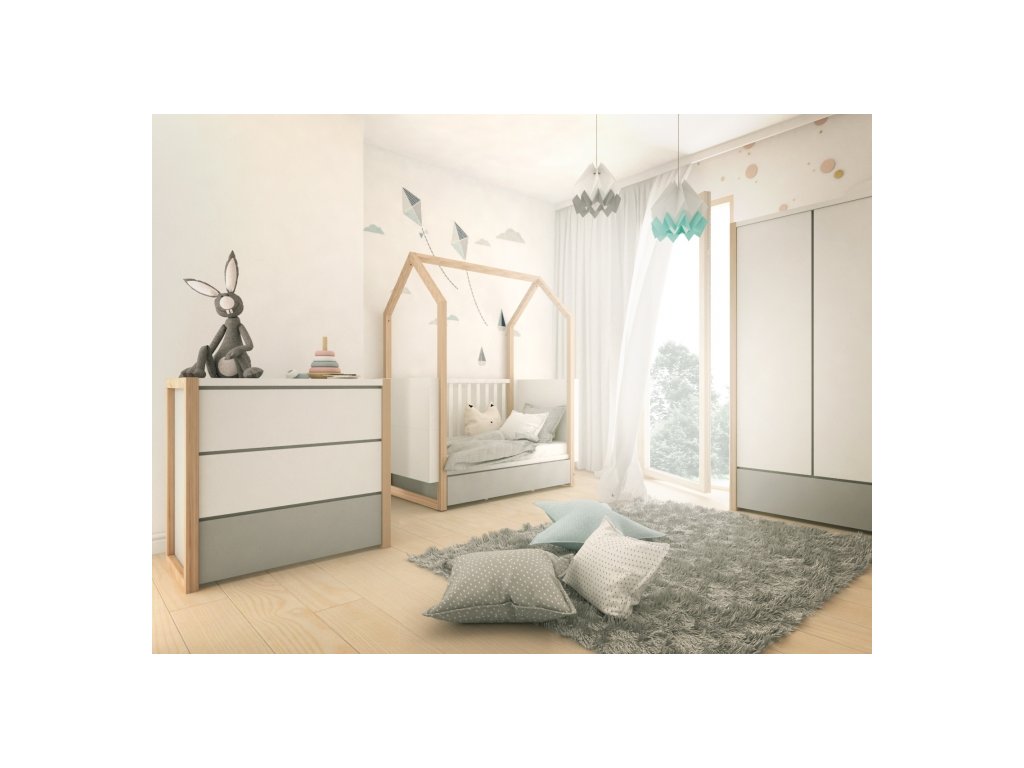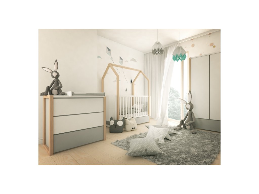 PINETTE - je moderní designová kolekce nábytku pro naše nejmenší. Charakteristický vzhled tohoto nábytku je světlá, teplá barva borovicového dřeva, které je dokonalé ve své nedokonalosti. Tyto nedostatky náhodně se vyskytujících suků, prasklin a nestejné jemné barvy. V kombinaci s pravidelným povrchem ostatních prvků tvoří pozoruhodný efekt. Jsme si vědomi toho, že kromě skvělého designu je také velmi důležitý praktický aspekt nábytku, takže dítě se bude moci rozvíjet a budovat si svou nezávislost. Hlavním prvkem této kolekce je postýlka - kde bude mít dítě přátelské místo ke spánku, a pro malé průzkumníky je i strategickým místem pro odpočinek a zábavu. Prostorná zásuvka pro různé dětské příslušenství a poklady snadno otevře každé batole (beze strachu že poškrábe podlahu), později až miminko odroste můžete postýlku využít jako postel - jde roztáhnout až do délky 160 cm. Možnost používání od prvního měsíce života až do cca. 10 let, bez nutnosti měnit postel.