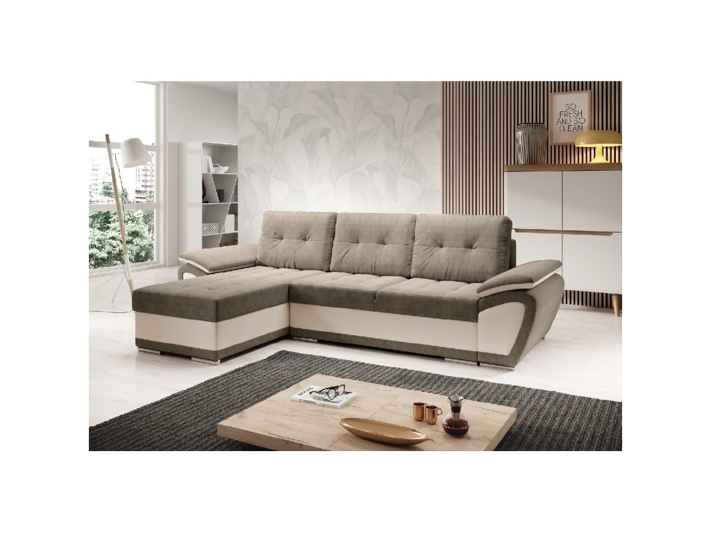 Rozkládací sedací souprava, béžová/světlohnědá, levá, ENIF ROH