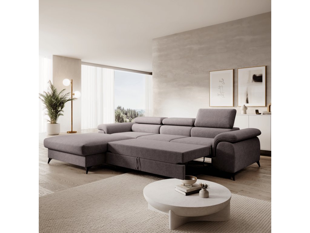Rozkládací sedací souprava, hnědá, levá, HORTY ROH