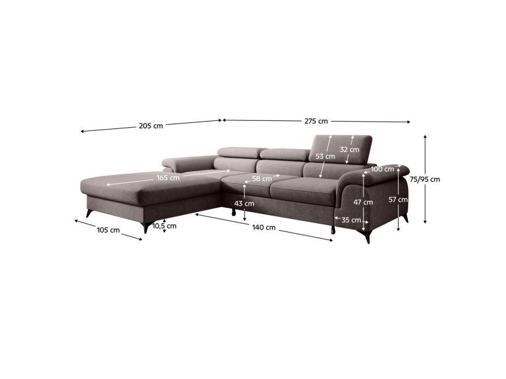Materiál čalounění: Whisper 04 Oděruodolnost látky podle testu Martindale: 100 000 Barva čalounění: hnědá Rozměry (ŠxHxV): 275x205x75/95 cm Plocha na spaní (ŠxD): 125x195 cm Výška sedu: 43 cm Hloubka sedu: 58 cm Rozměry otomanu (ŠxH): 105x165 cm Rozměry opěrky na ruce (ŠxHxV): 35x100x57 cm Šířka sedáku: 140 cm Na nožičkách Materiál nožiček: kov Barva nožiček: černá Výška spodního prostoru od podlahy: 10,5 cm Výplň: pružina falista + Pur pěna Rozkládací Rohová Celočalouněná S úložným prostorem Tři polohovací opěrky hlavy 5 stupňové polohování opěrek Ve tvaru L Levé provedení Dodáváno v demontu Možnost objednání v 8 barevných odstínech látky Whisper v ceně 36.390 Kč s dodací lhůtou 6-8 týdnů. Při individuální objednávce je třeba zaplatit 20% zálohu z dané částky. Po uhrazení zálohy bude Váš požadavek zadán do výroby.Balení (počet kusů : 2)