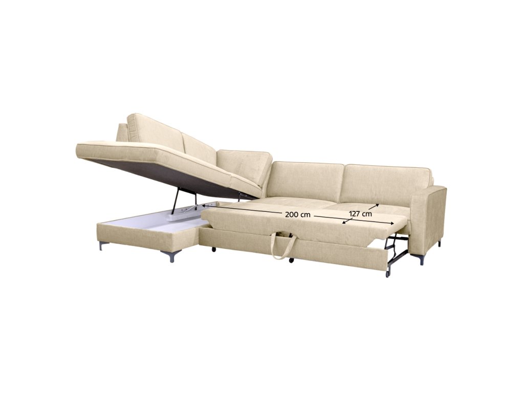 Materiál čalounění: látka Toronto 01 Oděruodolnost textilie podle testu Martindale: 70 000 oděrů Barva čalounění: krémová Rozměry (ŠxHxV): 247x205x92 cm Plocha na spaní (ŠxD): 127x200 cm Výška sedu: 45 cm Hloubka sedu: 59 cm Výška opěrky na ruku: 64 cm Šířka opěrky na ruku: 16 cm Na kovových nožičkách Barva nožiček: černá Výška spodního prostoru od podlahy: 10 cm Výplň: pružina Falista+pur pěna Rozkládací Rohová Celočalouněná S úložným prostorem Levé provedení Dodáváno s jedním záhlavkem 5 velkých polštářů Rozměry velkých polštářů (ŠxV): 70x53 cm Dodáváno bez dekorativních polštářků Kvalitní slovenský výrobek Dodáváno v demontu Možnost objednání v 6 barevných provedeních látky Toronto za cenu 38.650 Kč. Při individuální objednávce je třeba zaplatit 20% zálohu z dané částky. Po uhrazení zálohy bude Váš požadavek zadán do výroby. Dodací lhůta 6-8 týdnů.Balení (počet kusů : 2)